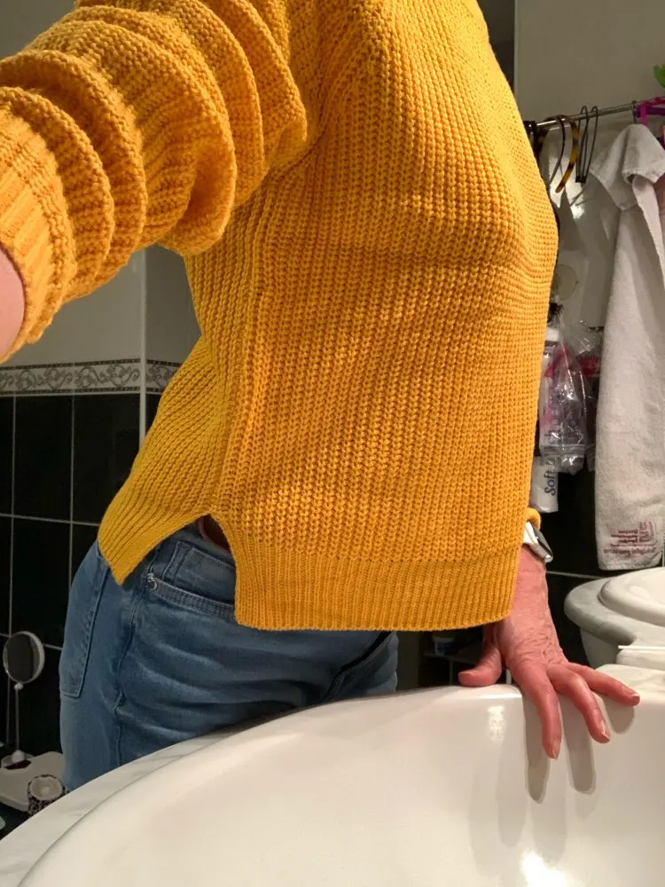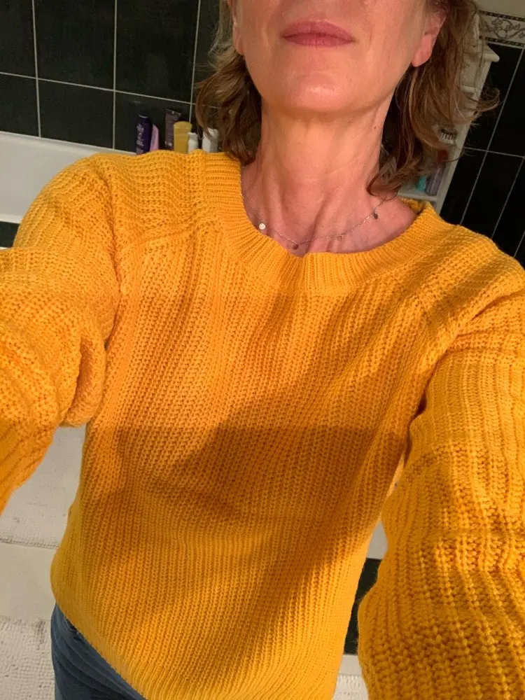 Looks like a good sweater, the quality is expected for such a price. Size M on OB 92 height 152. Come quickly.