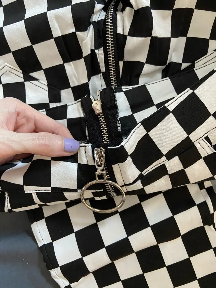I’m actually pleasantly surprised with the item! These pants look pretty and they’re very comfortable. The zipper opens all the way, and you can’t feel it when you wear them. The metal details look cool and overall they’re great with any simple top. I’m really happy with them, and I’m attaching some pictures to show how they look when I put them on. The sizing chart is accurate. I’m 5’6, and went with an M, and had no problems. The shipping was fast, a couple of weeks. A good deal and definitely recommended!