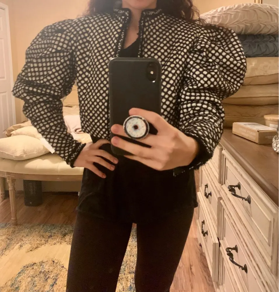 Quite liked the coat. Has a good texture. Would tee bought the L to be more at ease. But the coat is beautiful and super unusual♥︎