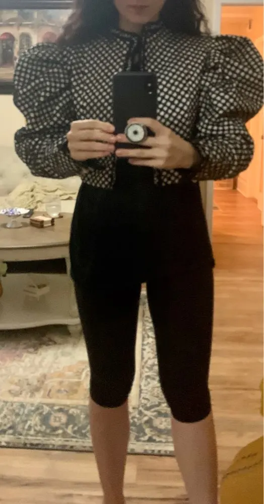 Ordered May 20 and received June 17th. With coronavirus and everything going on I was surprised it came this quick. The sleeves are dramatic but adorable, just like the photos. I wear a US4 or UK8. My chest and waist measurements are 34 and 27 inches. I typically wear a small and so I ordered this in a small. It is true to size. It’s a fun piece so don’t hesitate to buy it! The quality feels pretty good it’s not too think but it’s definitely light enough to move around in and wear a sweater under.
