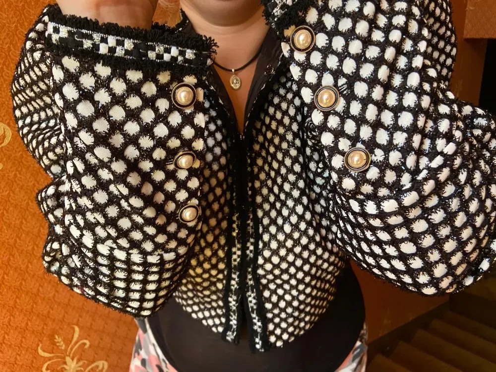 Божественная красота! Низкий поклон продавцу! Миллион звёзд)) заказала 8.08.20 , получила 17.08.20, неожиданно так быстро, но пиджак просто неописуемой красоты и очень стильный, кто любит классику, это сюда! Мои параметры 107 / 95 / 114 , ношу 50 р-р Одежды, заказала 2XL , как по мне шито)) я просто не налюбуюсь этой красотой! Пиджак укорочённый, пуговицы на месте, ещё подвеску из брюлликов , блузончик с бантиком и вышка будет! Дополню отзыв немног позже , уже в описанном виде ))Спасибо дорогому продавцу, процветания в бизнесе! Мало того мне ещё и скидку сделали , помимо того что на него была горящая распродажа! Ну класс! Браво