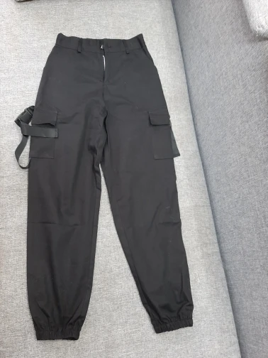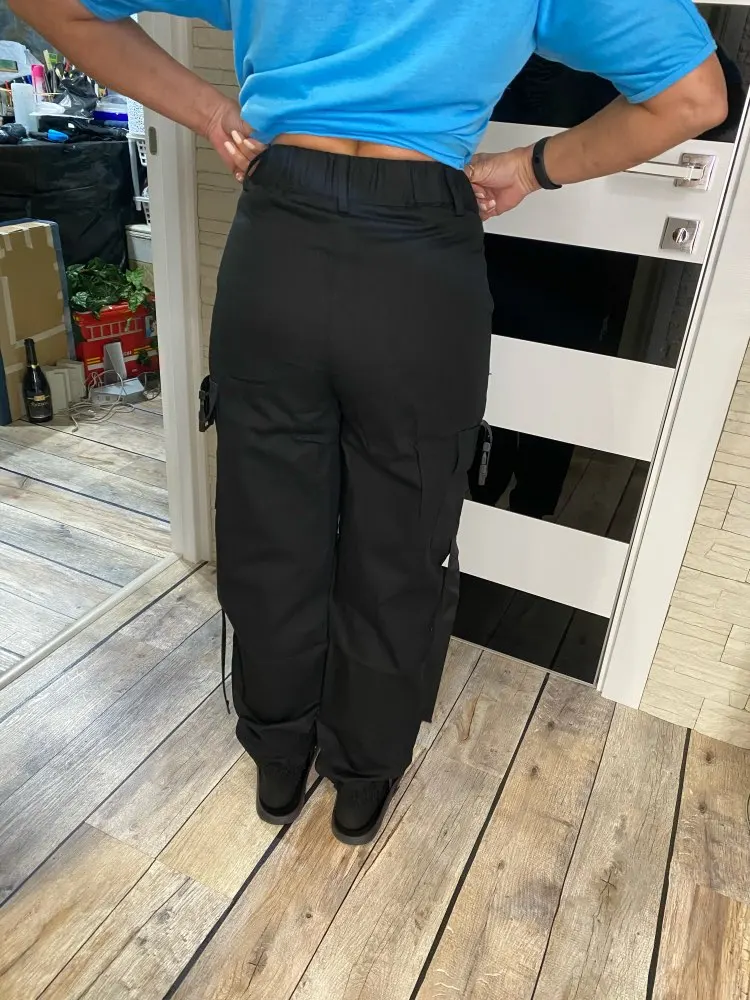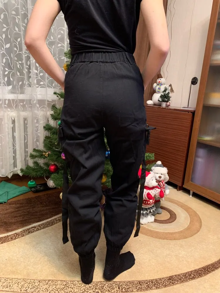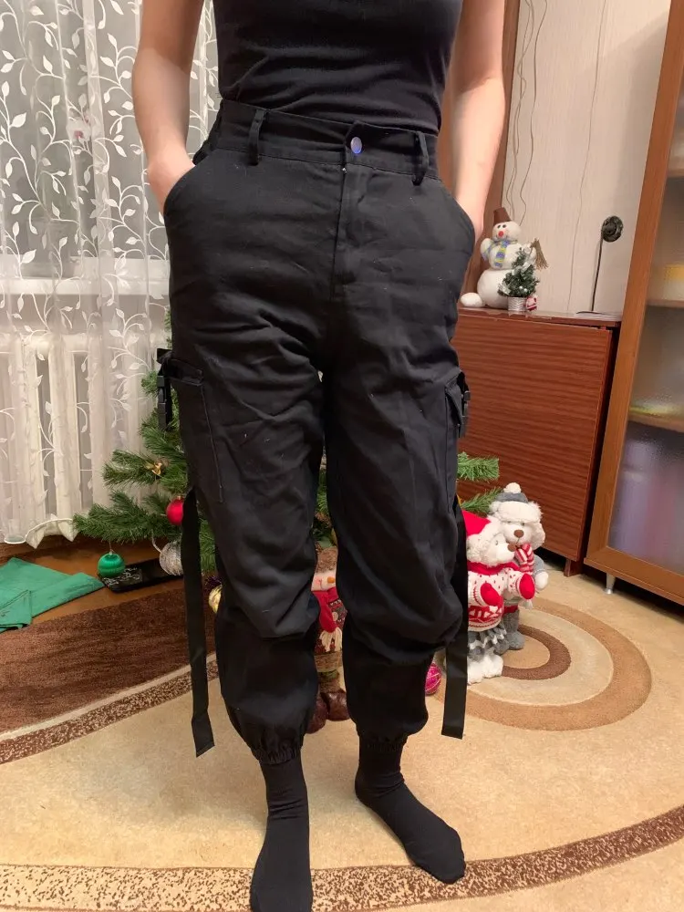 Streetwear Cargo Pants Women Casual Joggers Black High Waist Loose Female Trousers Korean Style Ladies Pants L0007