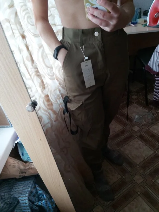 I really liked the pants, on my usual European m took M. excellent. (60-89) at the waist a little loose, I will wear with a belt (my belt) the fabric is pleasant. Rubber bands below do not press just right. Quality sewing, there are no protruding threads, very neat and even lines. Thank you very much to the store. I recommend❤️❤️❤️