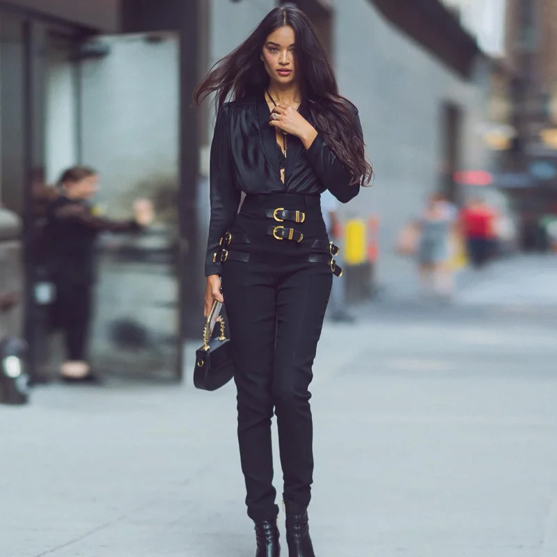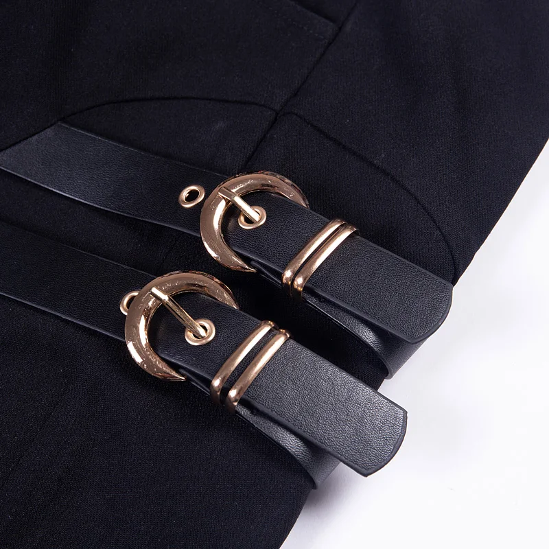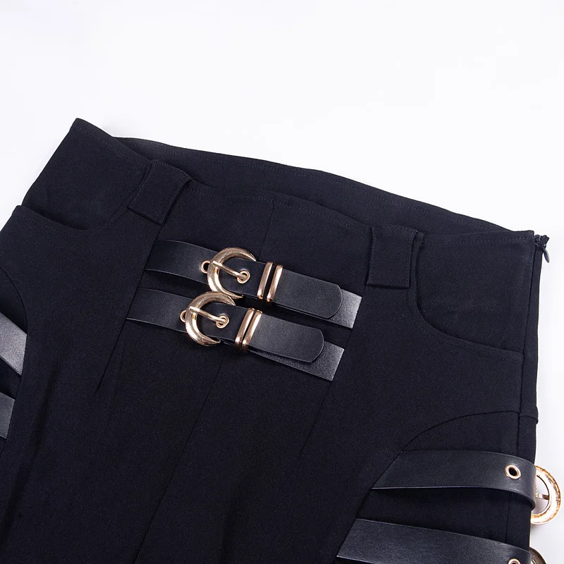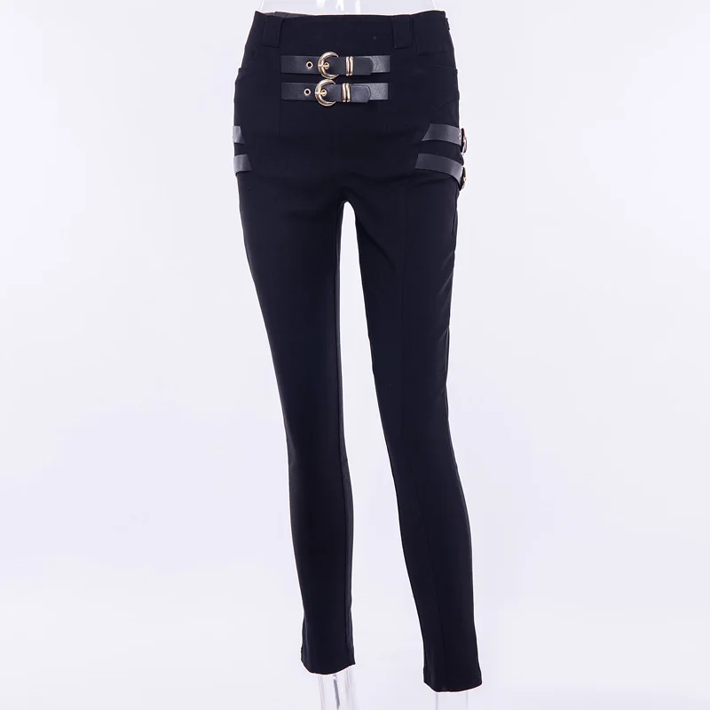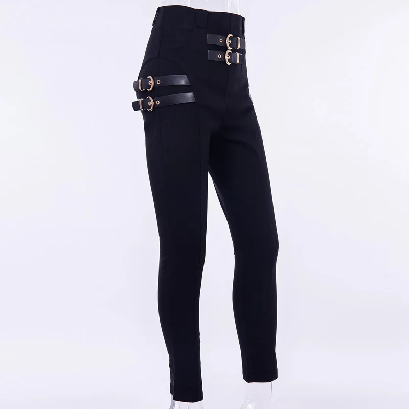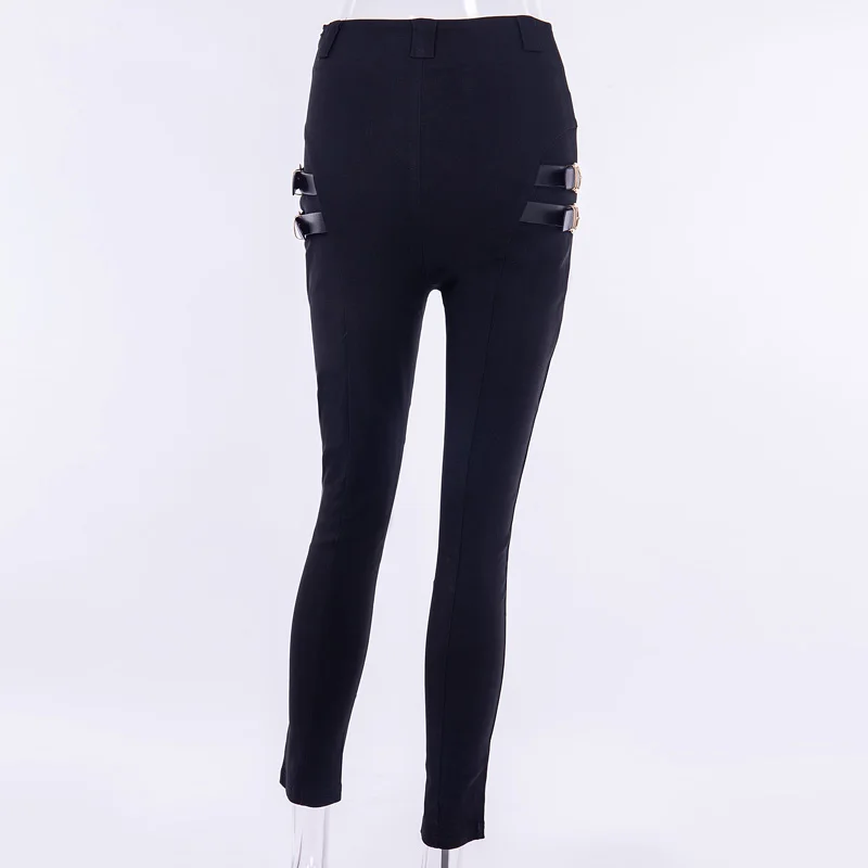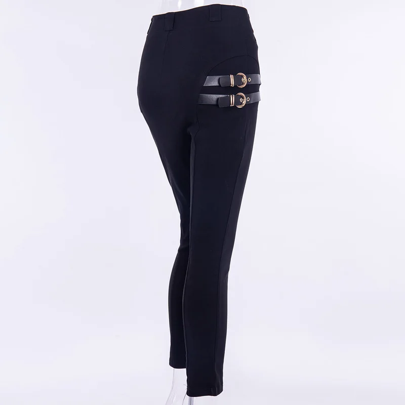 Streetwear Elegant High Waist Pencil Buckle Pants