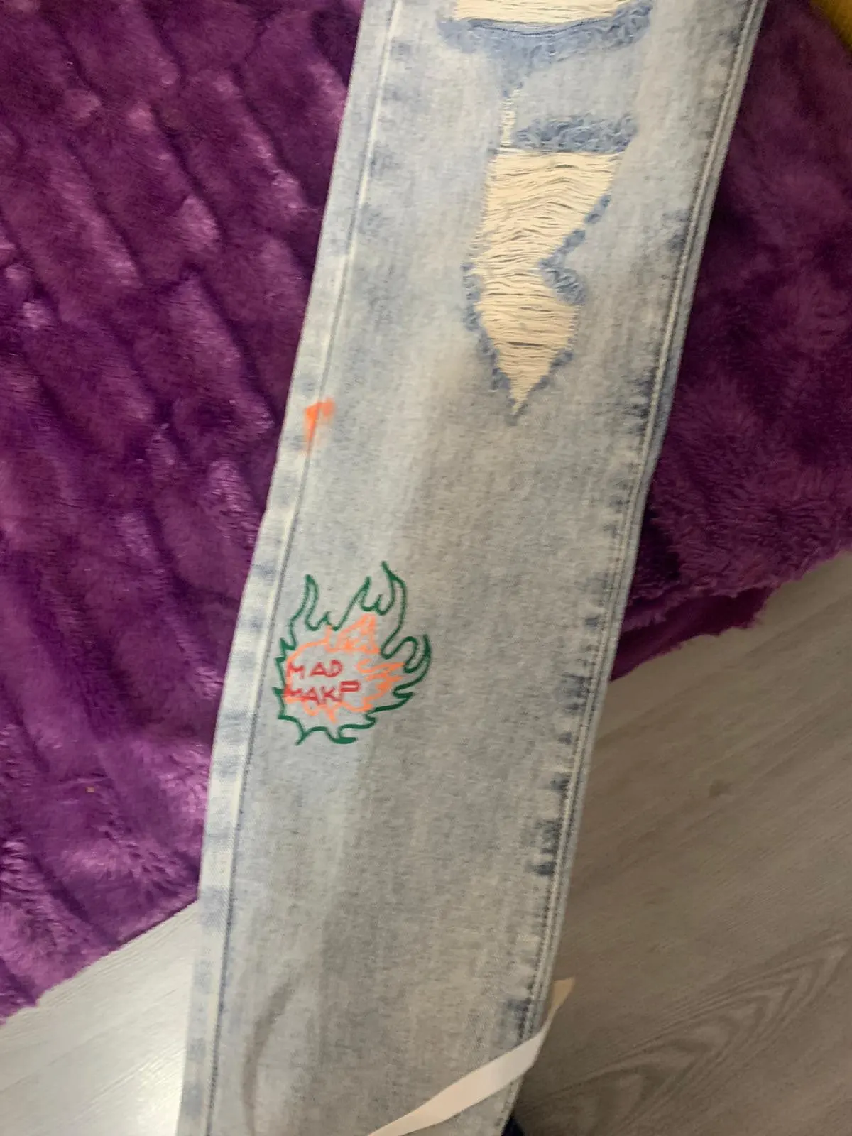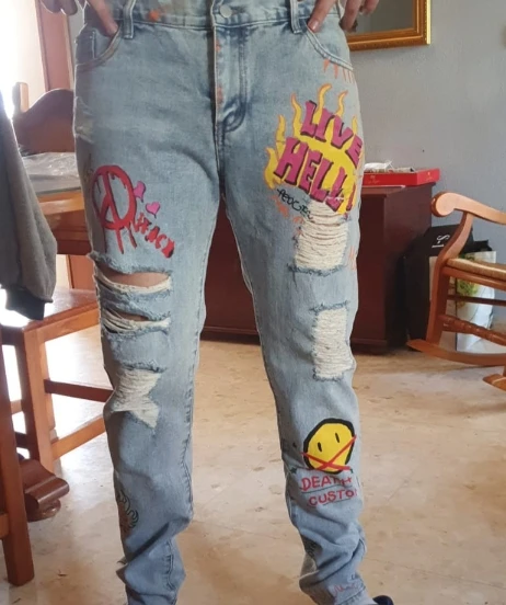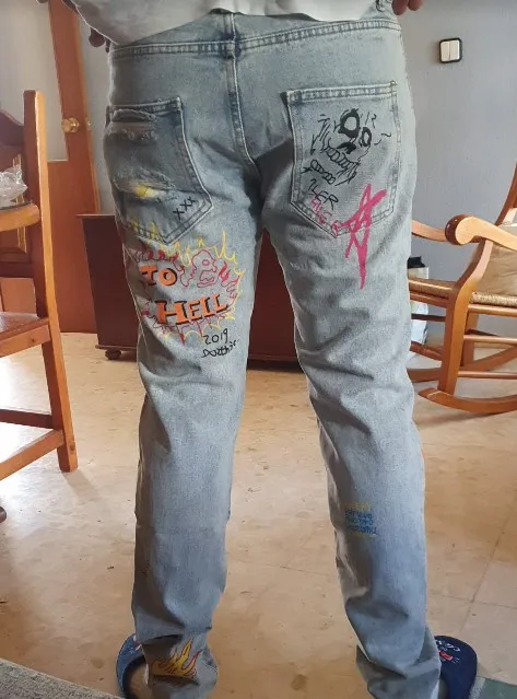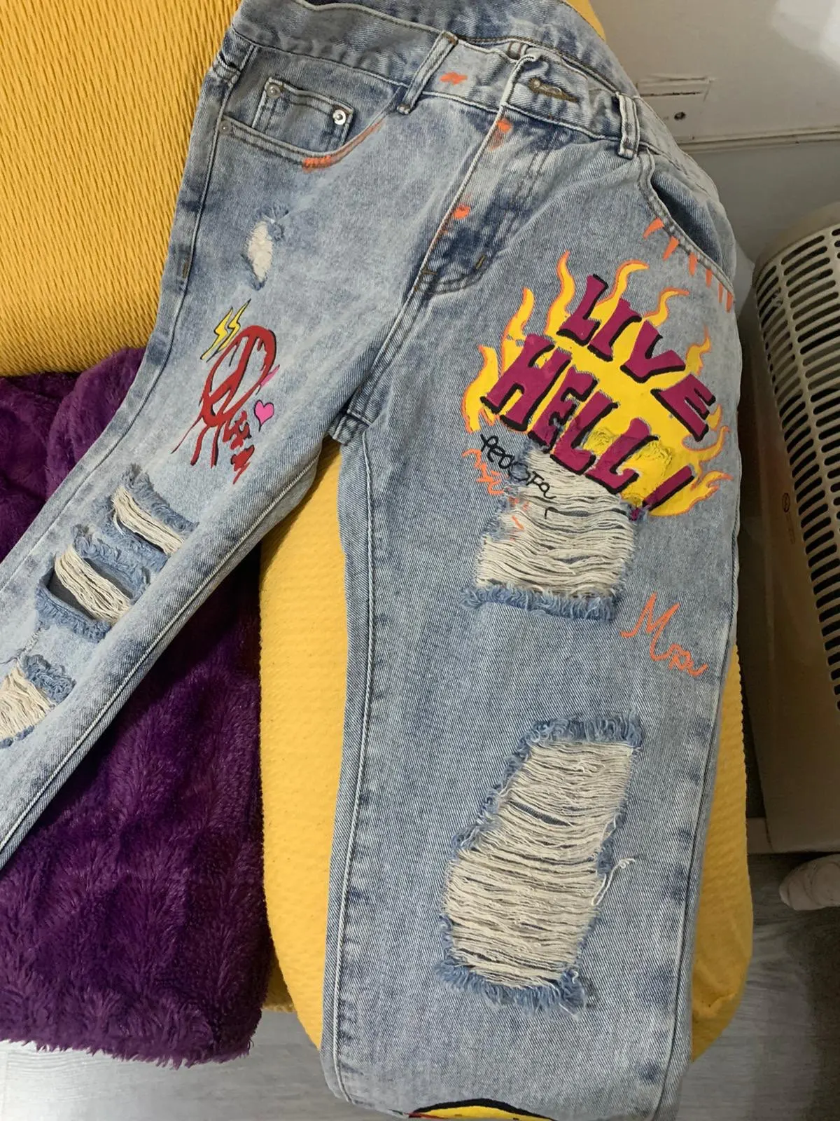Streetwear Graffiti Denim Pants Ripped Patchwork OUT0800