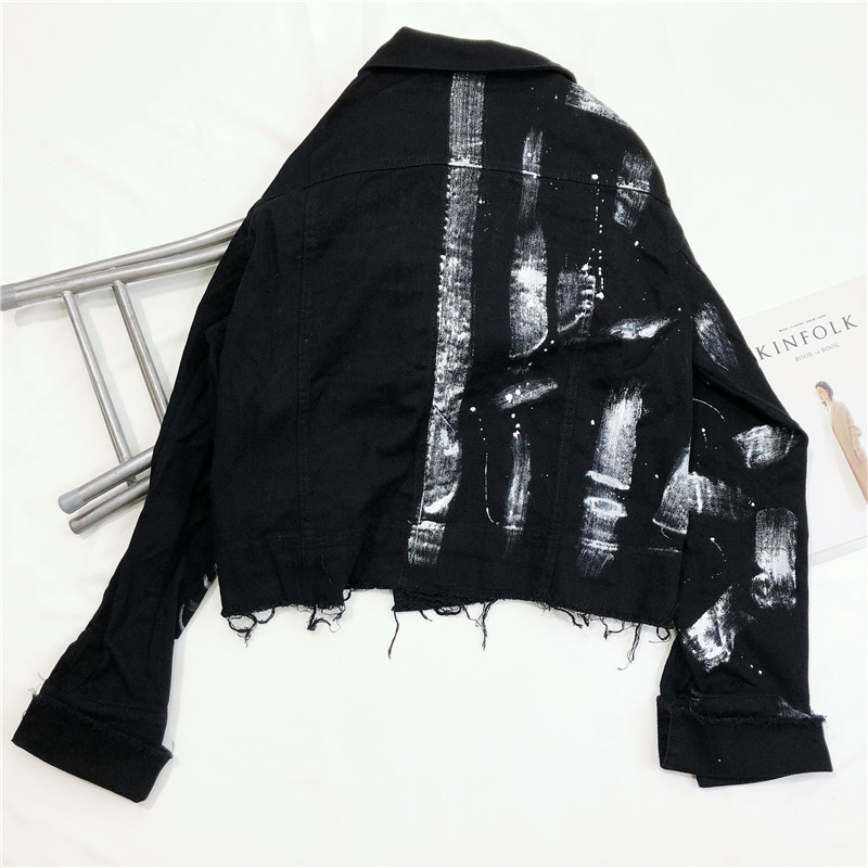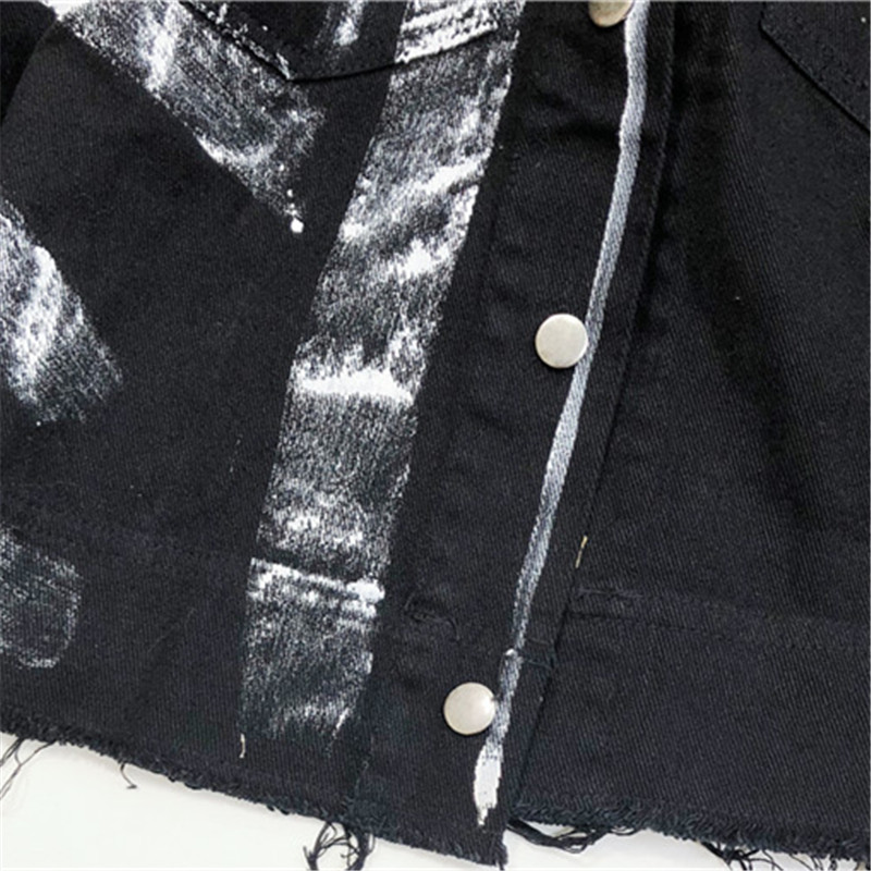 Streetwear Women Denim Jacket Graffiti Print OUT0803