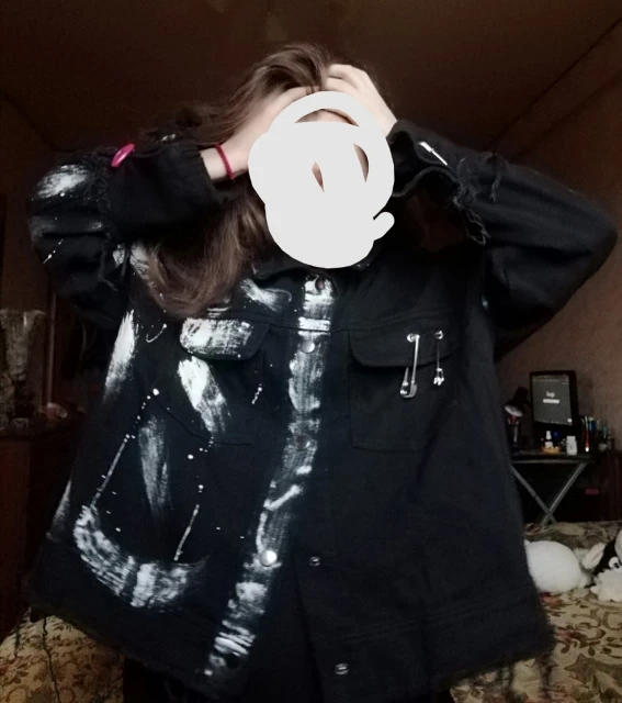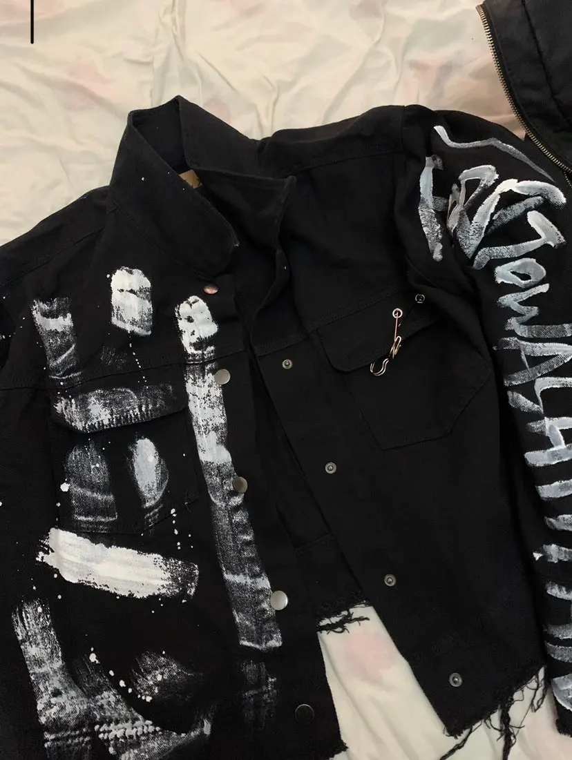 Streetwear Women Denim Jacket Graffiti Print OUT0803