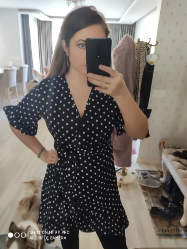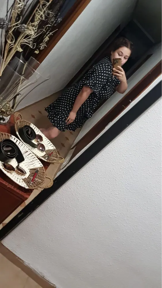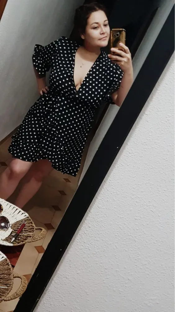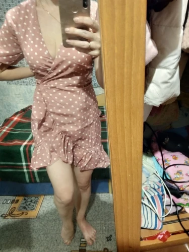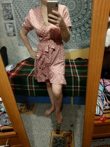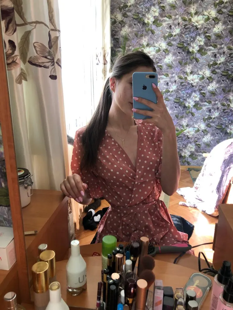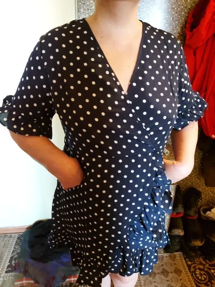 The first time I arrived so quickly the parcel, in just 12 days. The dress is huge, I will suture. I also want to cut the shuttlecock on the sleeves, for me it's too much. And so the dress is light, beautiful. I'll go and wear it with pleasure!