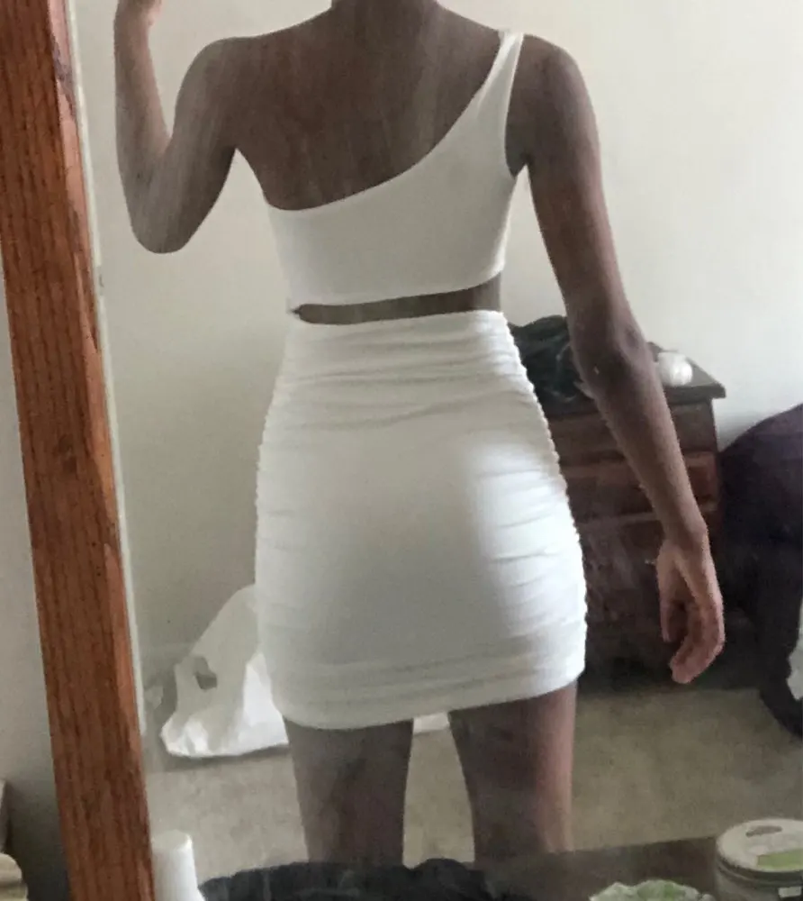 It’s so cuteee, it’s very thick material and honestly the only complaint I have is that the top part while it covers my chest, I find myself having to constantly pull it up so that it doesn’t completely expose me I’m a 36C if that helps