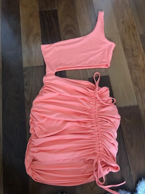 didn't expect much for $10 dress, but item was high quality and well made. material also high quality ( swimsuit stretch material ). fits tight ( it meant to fit tight ) but very comfortable for 32"-26" - 25" ( chest-wasist-hip). I am coordinating with $1400 boots and $5000 handbag. Dress looks expansive all together. i am going to buy another color.