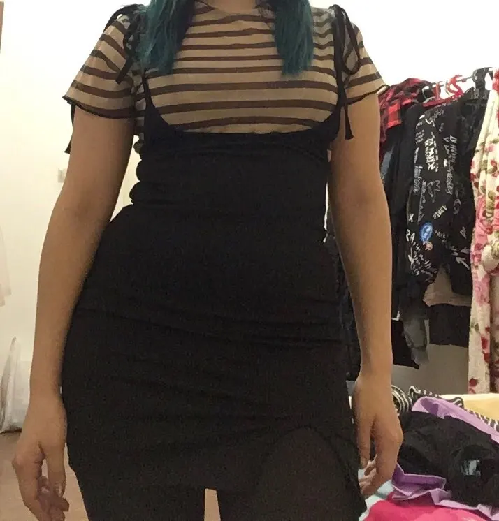 I have a big butt and thick thighs, so i had to keep pulling it down. I got a lot of compliments on it, it’s really cute and stretchy. The material was comfortable, I got a M. It is kind of tight on me, I maybe should have gotten an L but I think the L would be too loose for me. I’m 5’3, 65kg