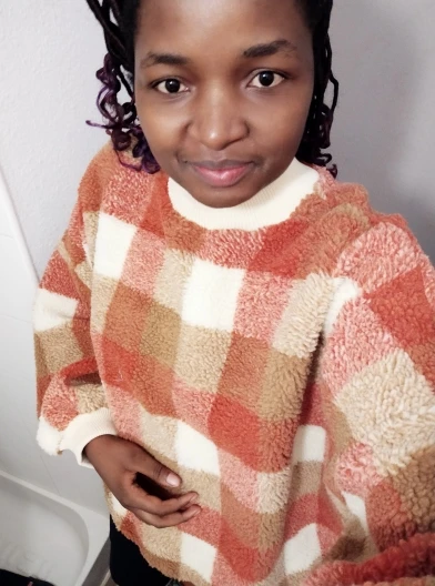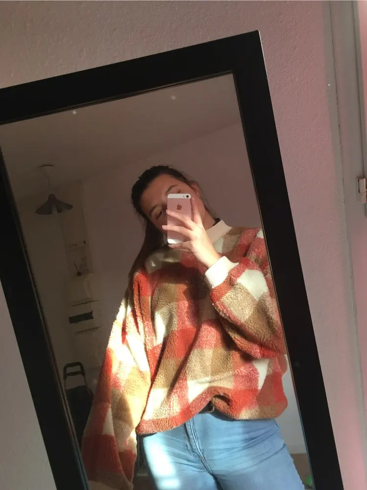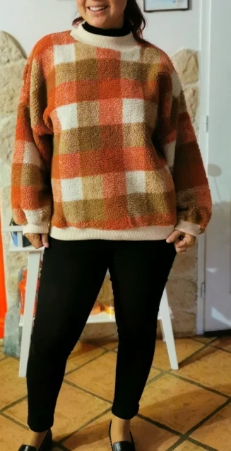 I took l to make it oversize. Attention I measure 167cm and it is shorter than in the photo where the girl has the hat. It is this length on my mother that measures 160cm