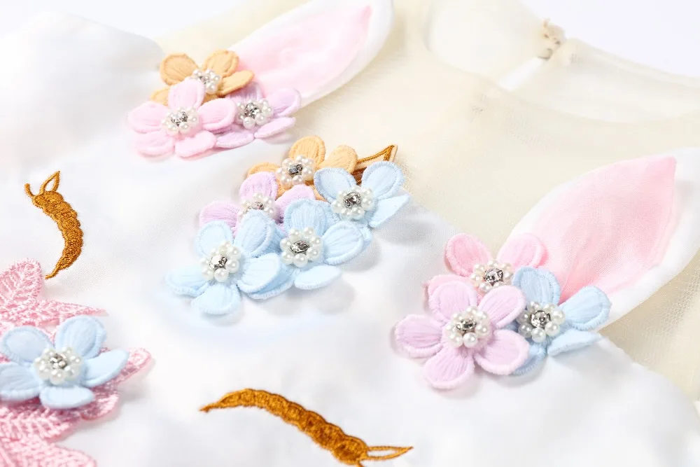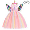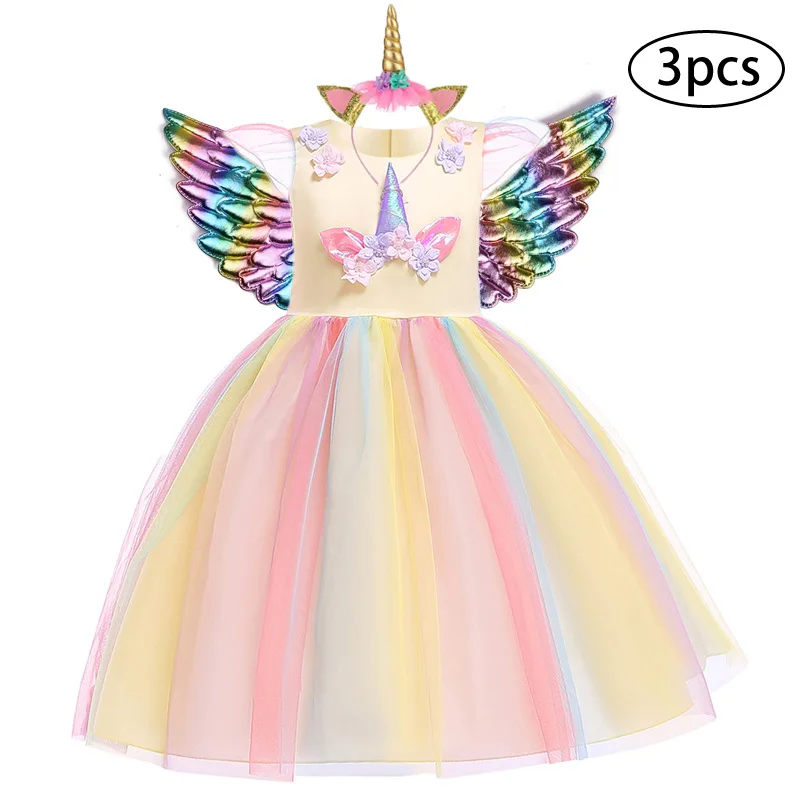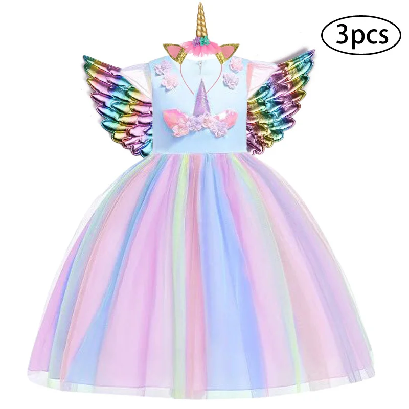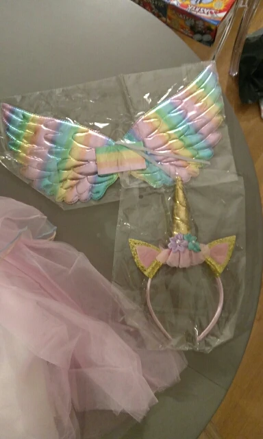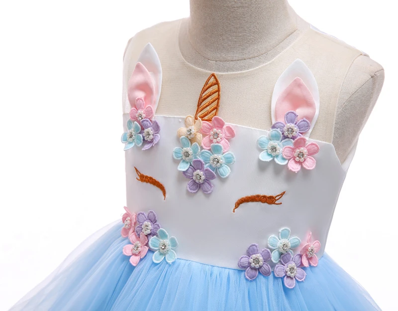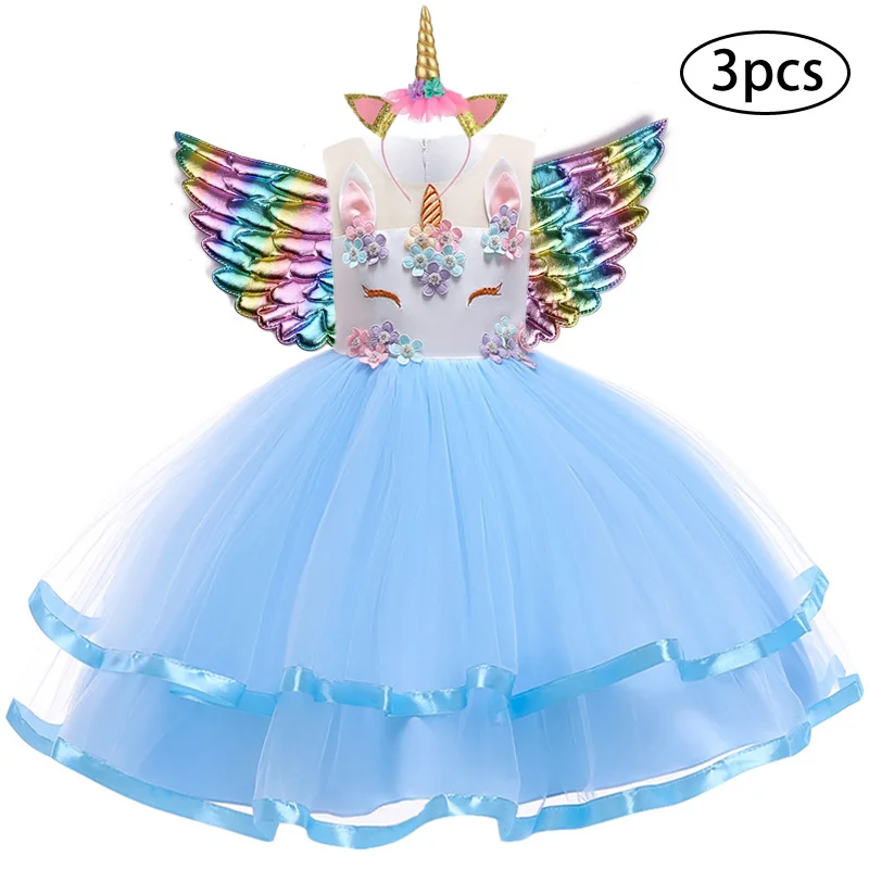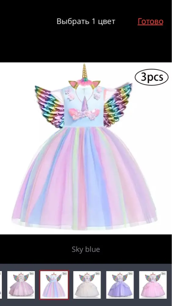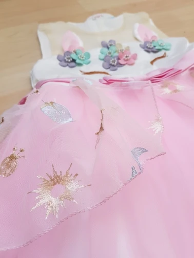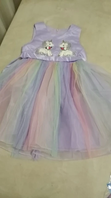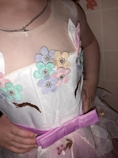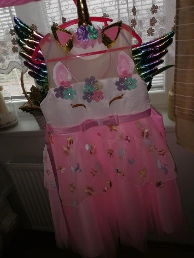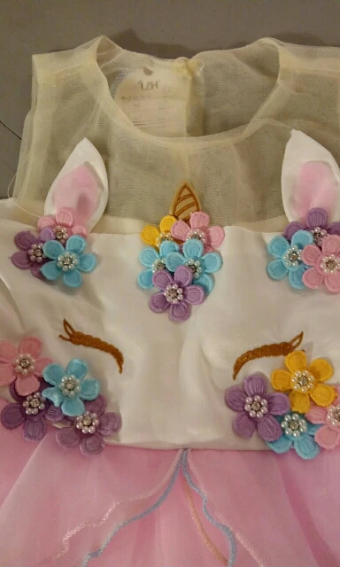 Our new year's dress came, for the age of 3 years and 10 months and the weight of 19 kilograms, ordered 4 and came perfectly so the girl not Thumbelina)))) size 110 on the label. The color of course is not blue and blue! The ears of the unicorn on the dress are planted on the glue. My daughter is very distant and happy.