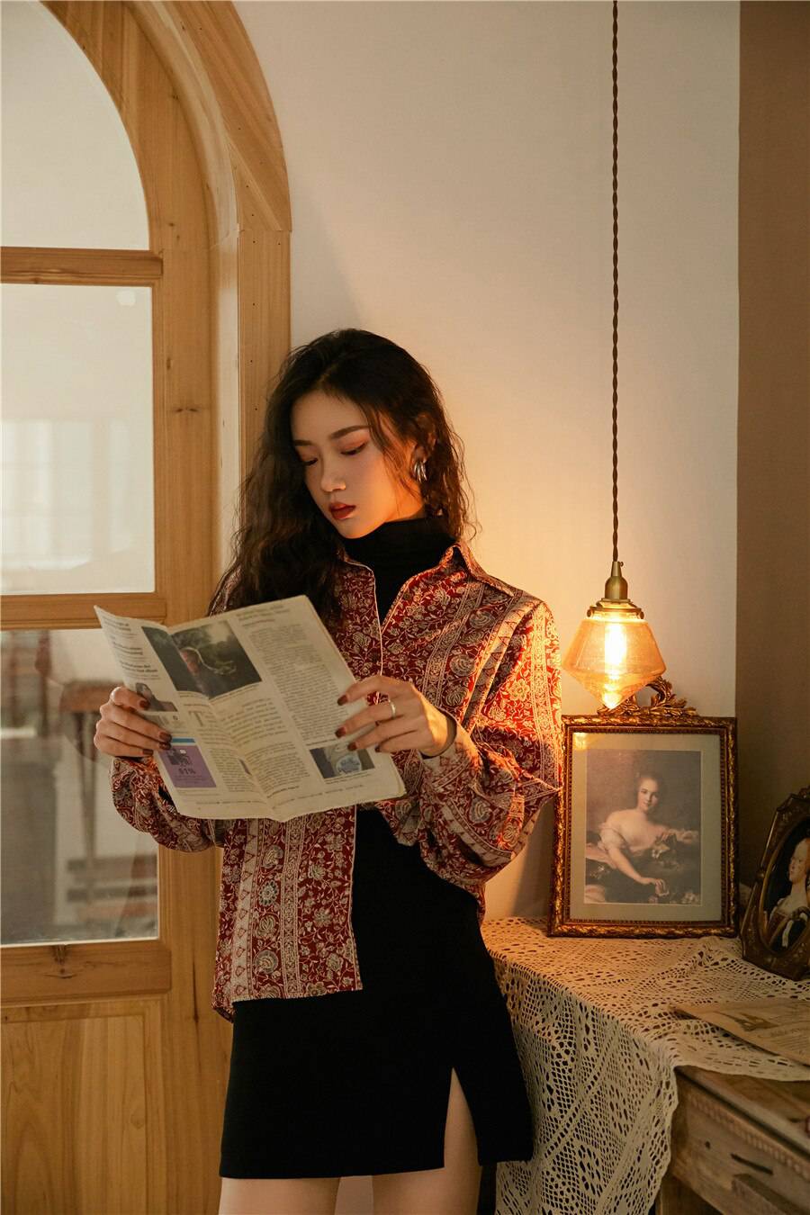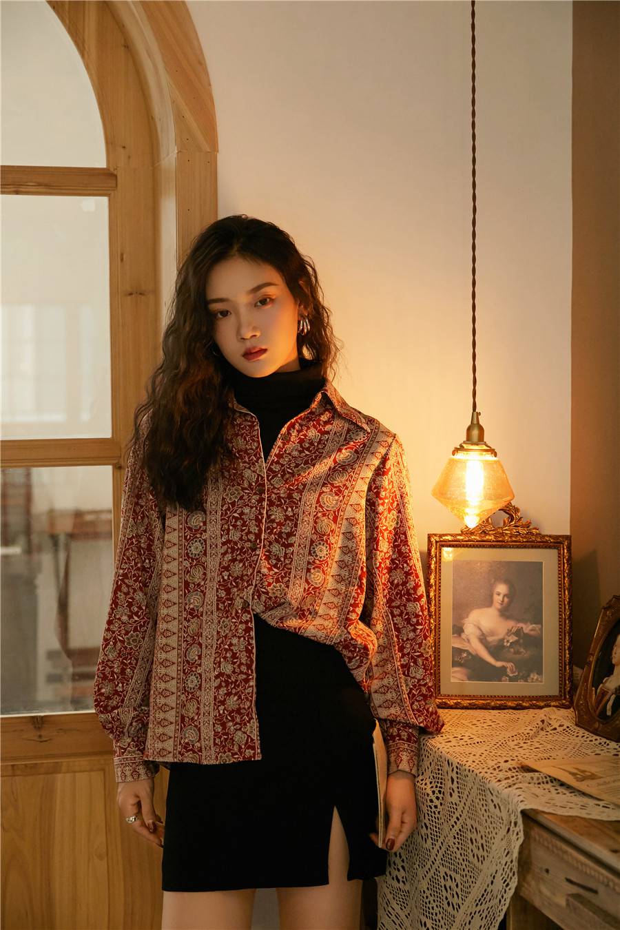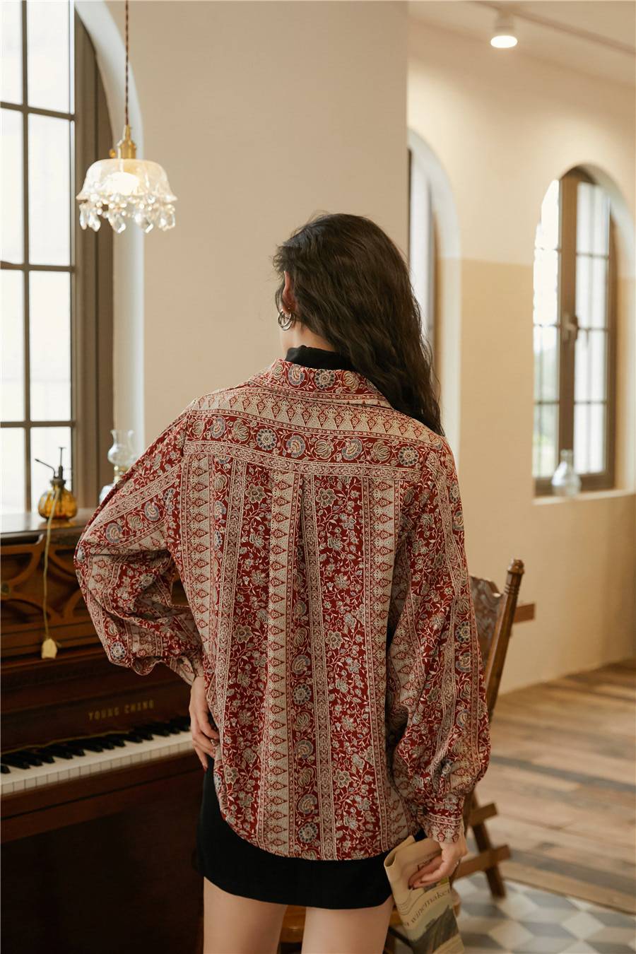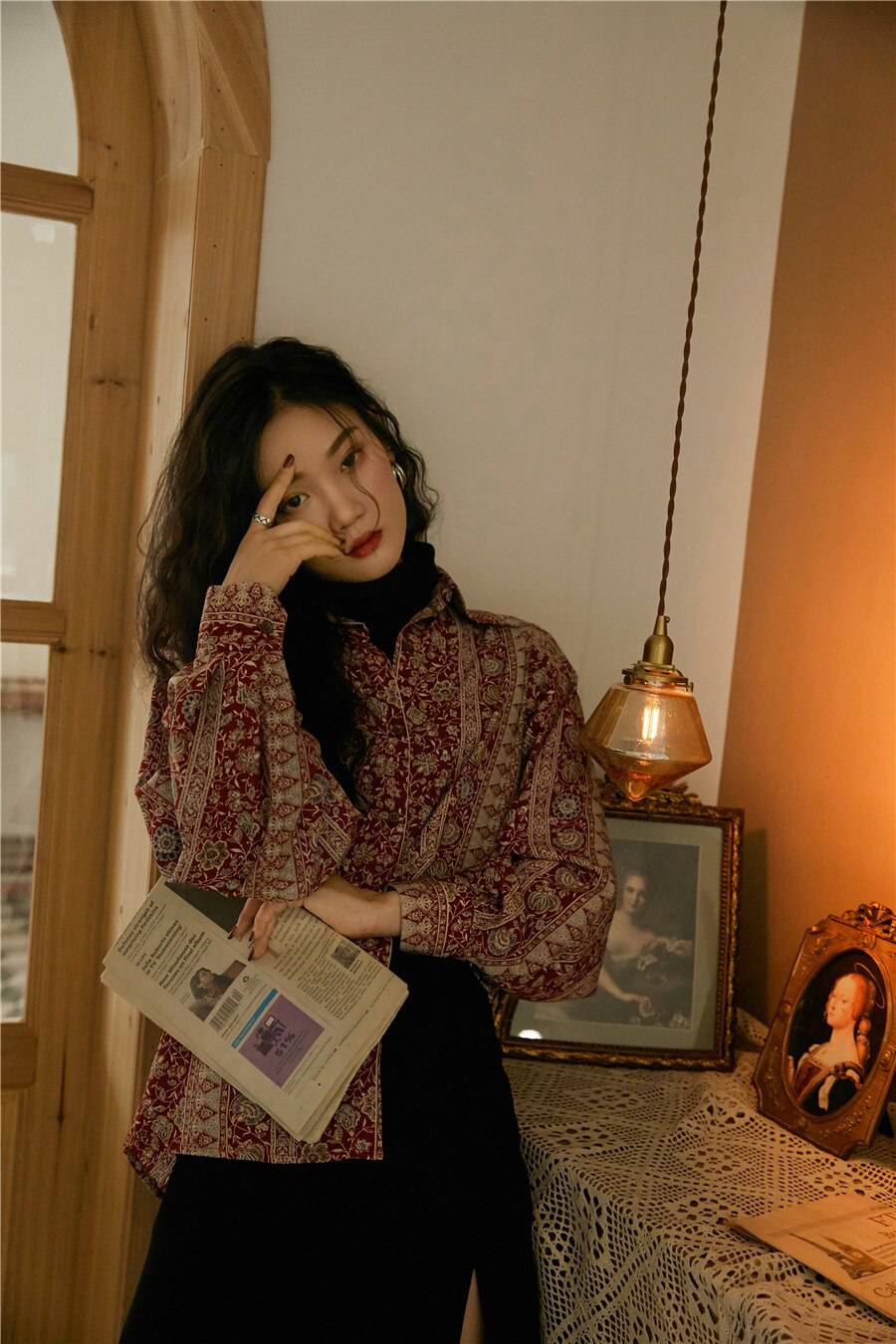 Beautiful blouse! Exactly as pictured. The colors are so vibrant and then print is so classy and vintage-y. I am 5'8", 32B and EU 36-38 and it's a perfect fit. Higly recommend this store. :))
