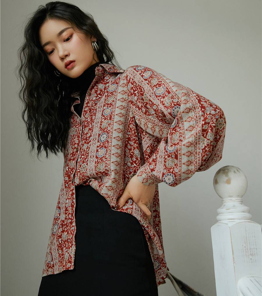 Vintage Floral Long Sleeve Button Up Shirt OG0759