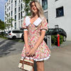 Vintage Floral Puff Sleeve Dress Cottagecore Mini Dress with White Collar for Women OUT1029