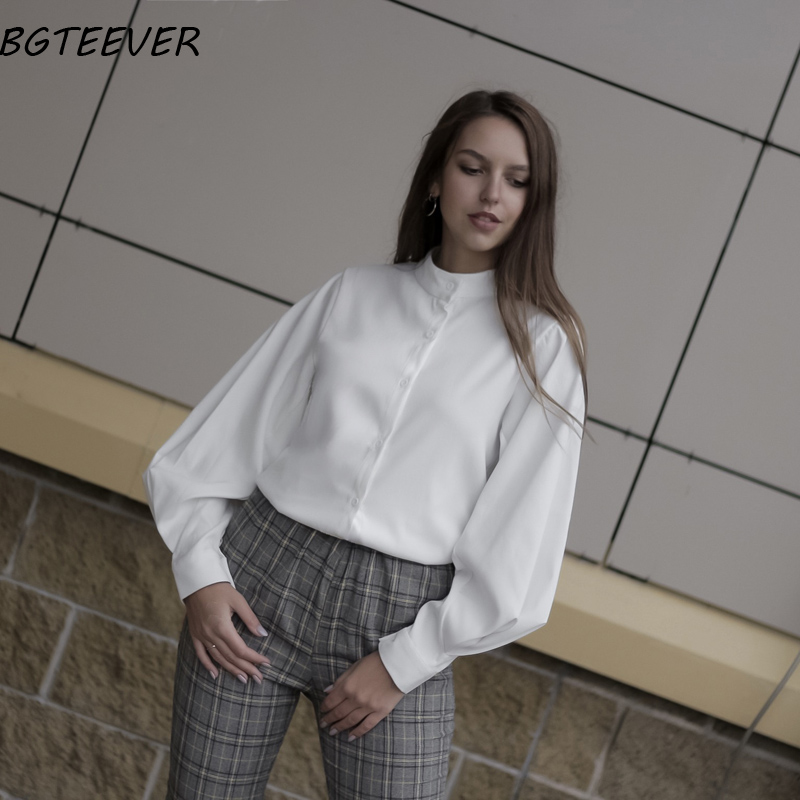 Vintage Lantern Sleeve Autumn Winter Thicken Women Shirt Blouses