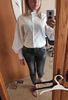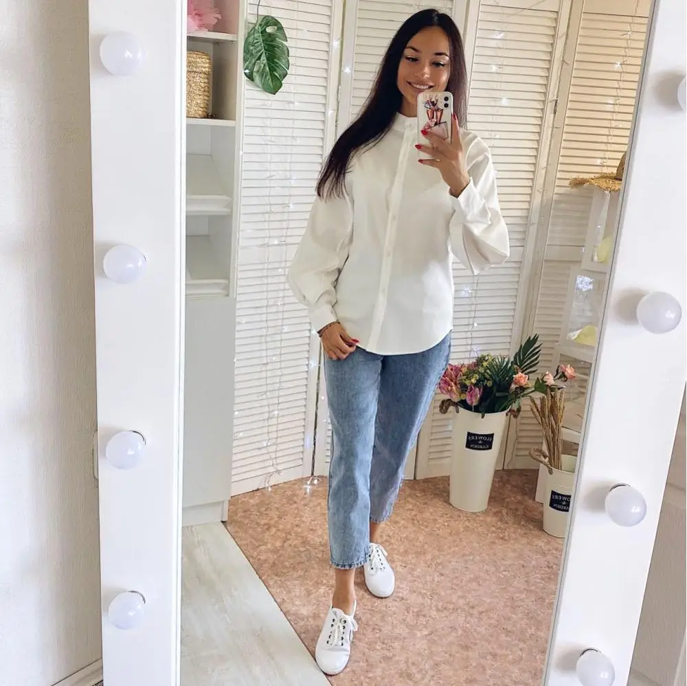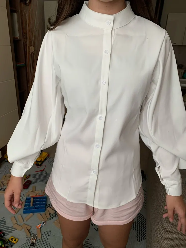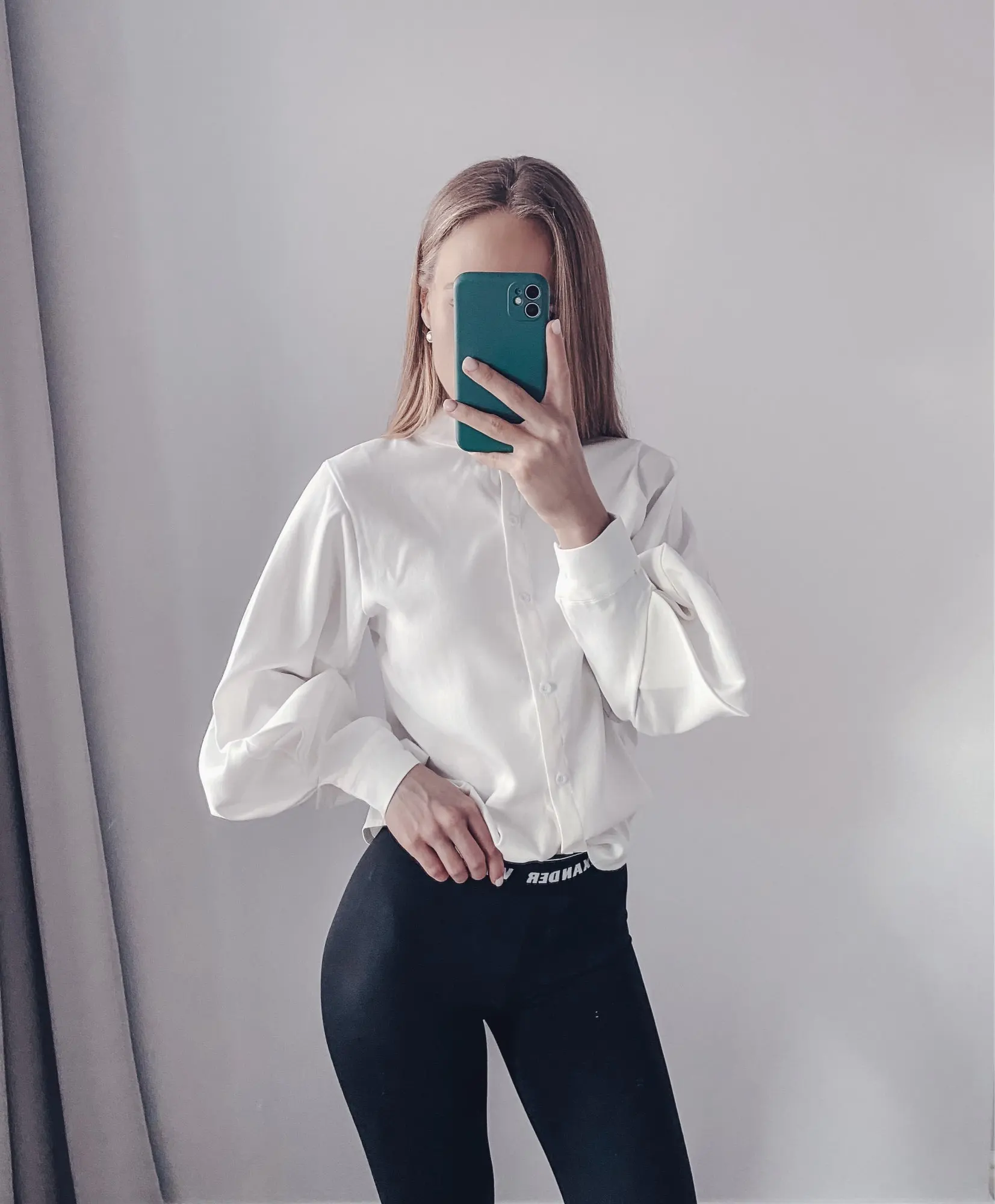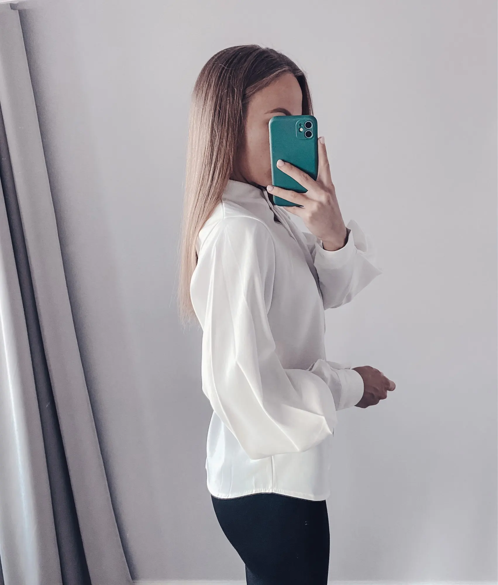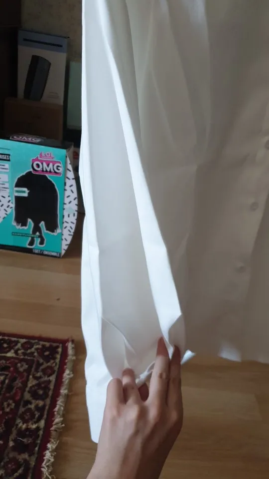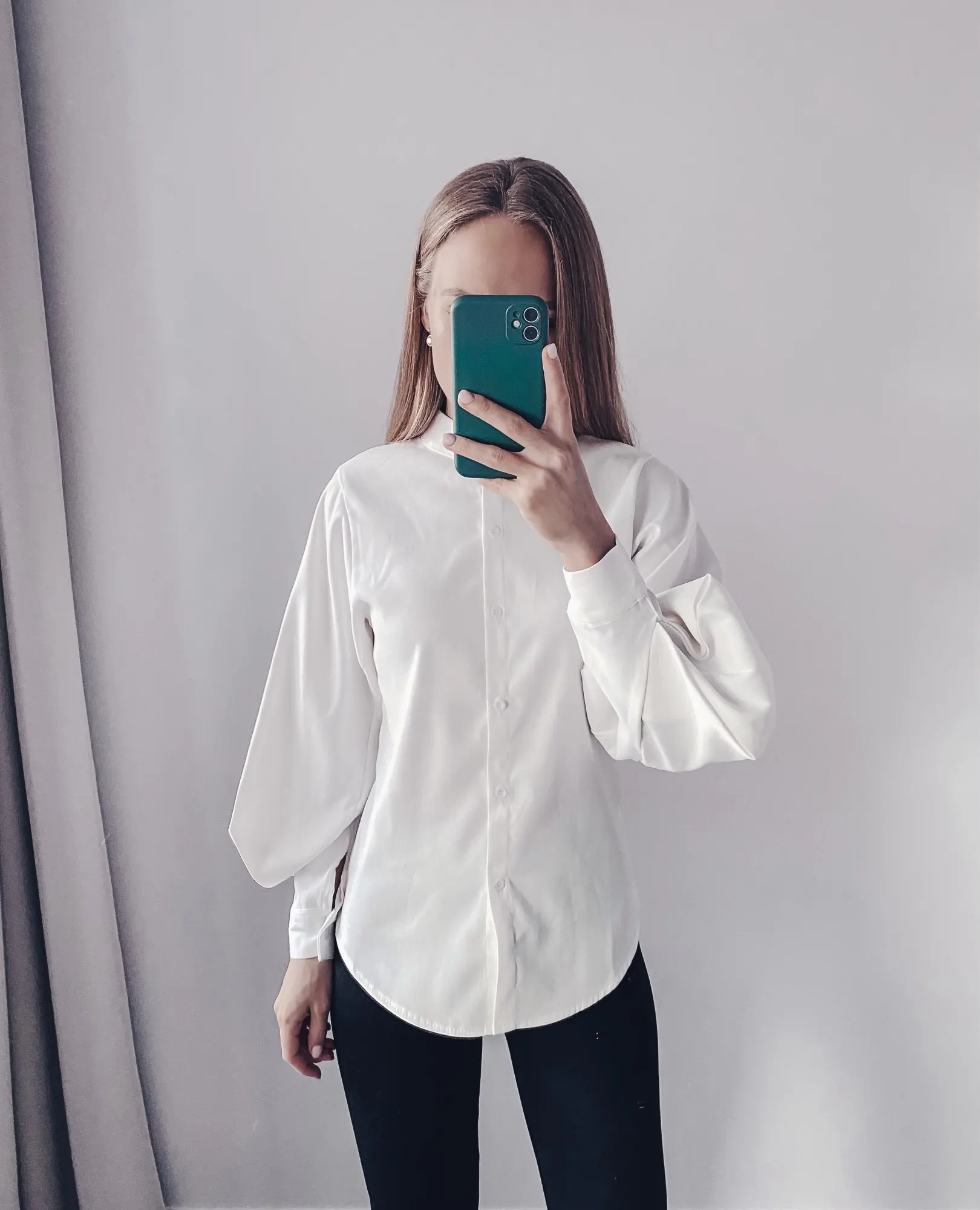 Great blouse! One of the best purchases. When I put on, I felt French :) On her s bought m. I sat perfectly. No more, no less. The collar goes exactly under the throat. The fabric does not shine through, it feels pleasant. Sewn well extra thread No. Sleeves deserve special attention. This is the main feature of this blouse. They are sewn very unusual, in 4 layers of fabric (I hope, the photo shows). I do not know how to iron them yet. Just a steamer, I guess. As a gift there was a rubber band. Many thanks to the store for such a wonderful price/quality ratio in the direction of quality!