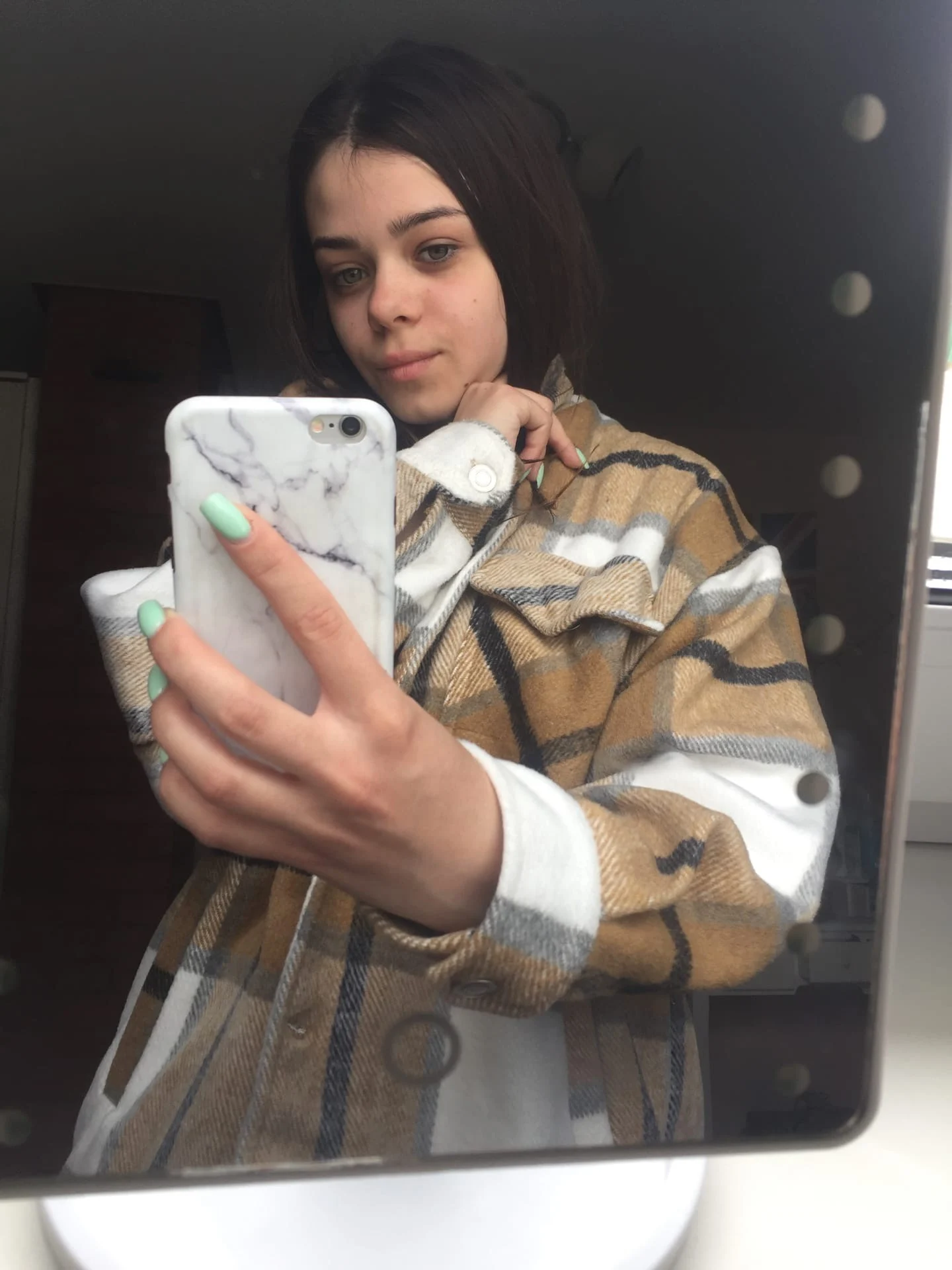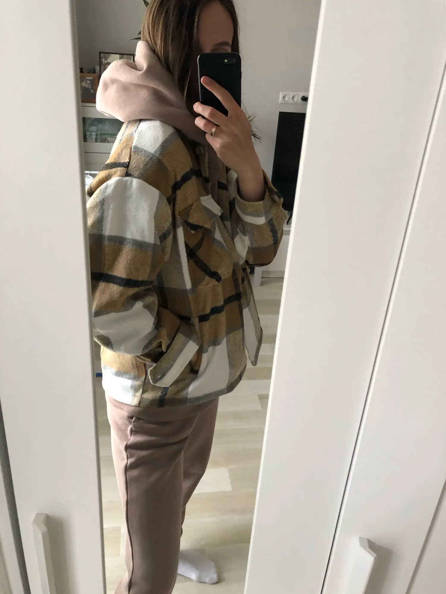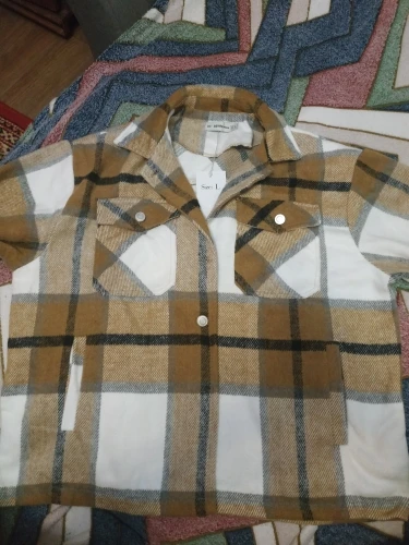 The shirt is warm, the length from the back from the collar is 69 cm (you can measure to where it will be to you), the quality is good, there are some spots