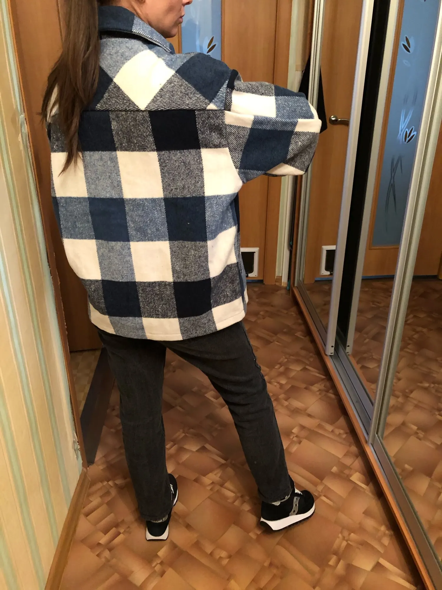 Very long shipping goods. It's been a week and a half, and the store never sent his shirt. I wrote a message and only after a day I taught the answer from the category-OK, just send... Well, that's it. .. Long hesitant what size to take, S or Xs... I wear 40-42 height 163 (82-63-84) eventually took Xs. She sat well, sleeves clearly, shoulders in place, there is an oversize effect, along the length of the ass covered. On the head, the body is pricked, maybe after washing there will be norms, but in general it's outerwear, the type of jeans is warm. The quality is normal, the seams are even, there were a couple of threads. But came in spots, opened a dispute for a partial refund. The parcel was fully served. Color matches