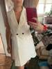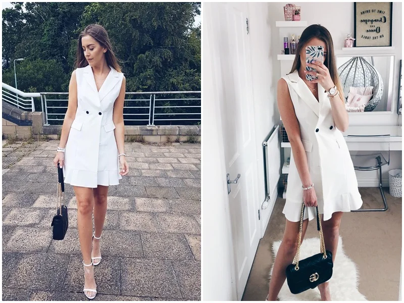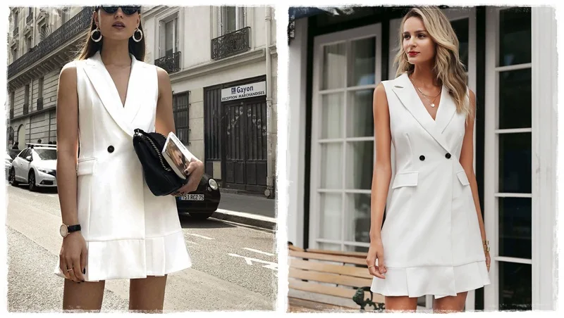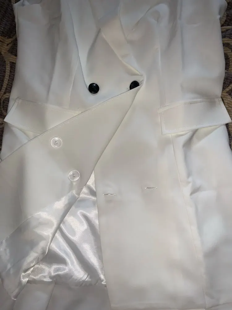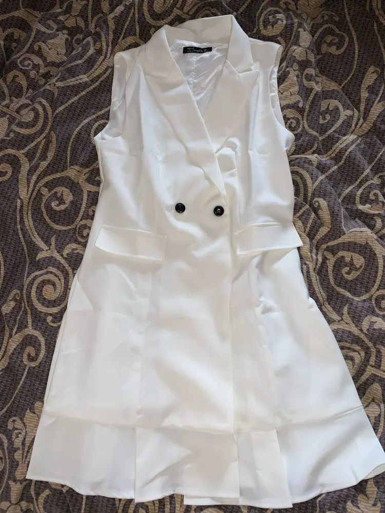 Sleeveless / Turndown collar / Ruffle hem / White /Blazer