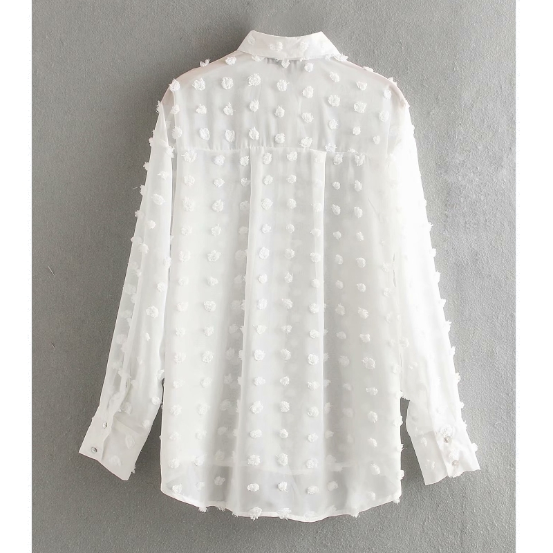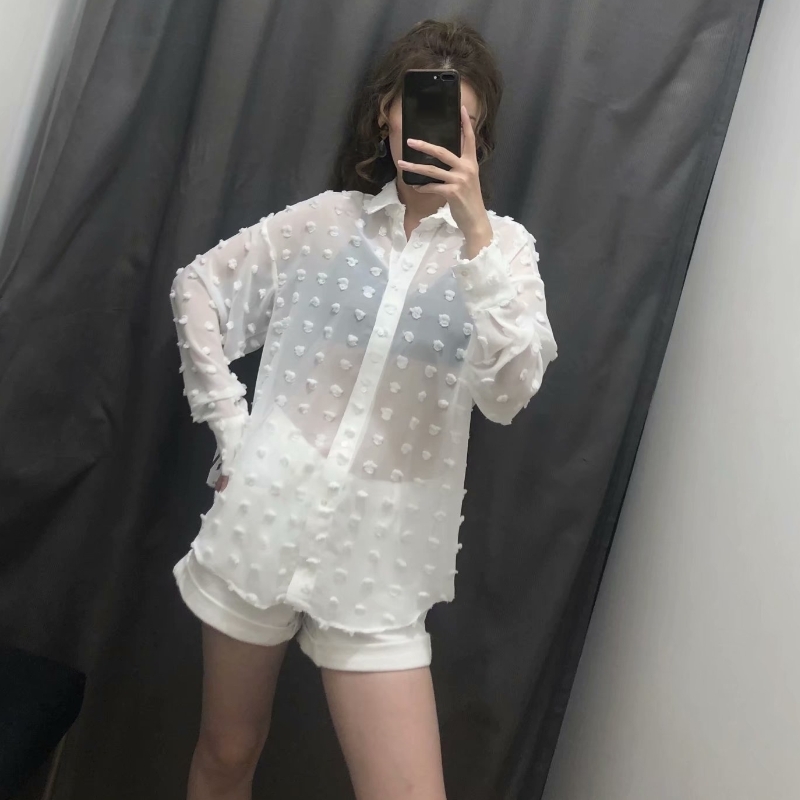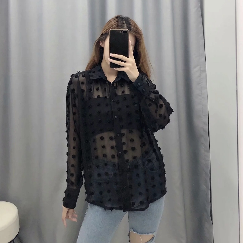 Sweet blouse, came in three weeks. On the parameters 86-66 and height 171 size m looks overweight, you could take a smaller size. The length of the sleeve is full, not short. The blouse itself along the length covers the ass. You can make many images.