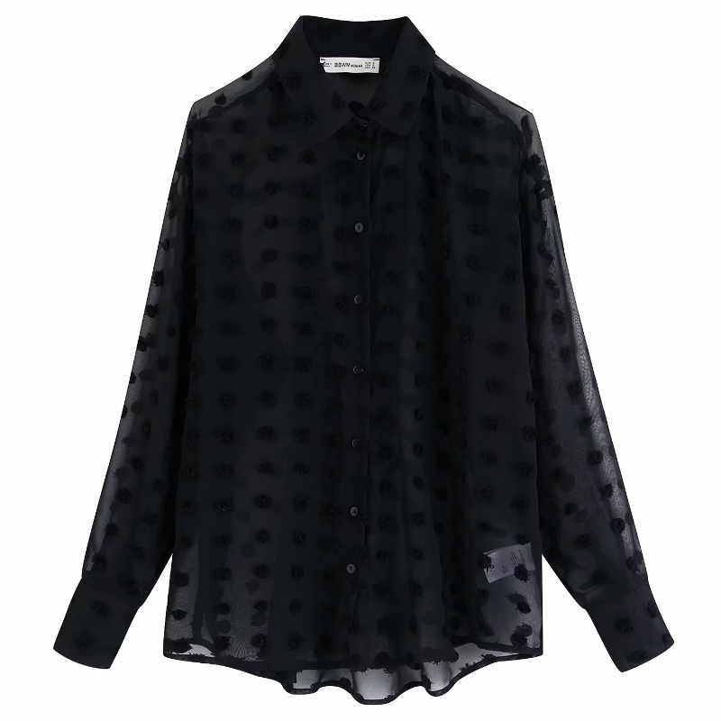 Nice blouse. To the body is pleasant, although synthetics. Very transparent, I plan to wear with a T-shirt. Blouse with tags and labels. There are tags with recommendations for care. Threads do not stick out anywhere. Delivery just over two weeks. Recommend