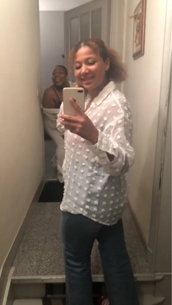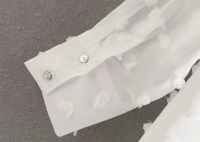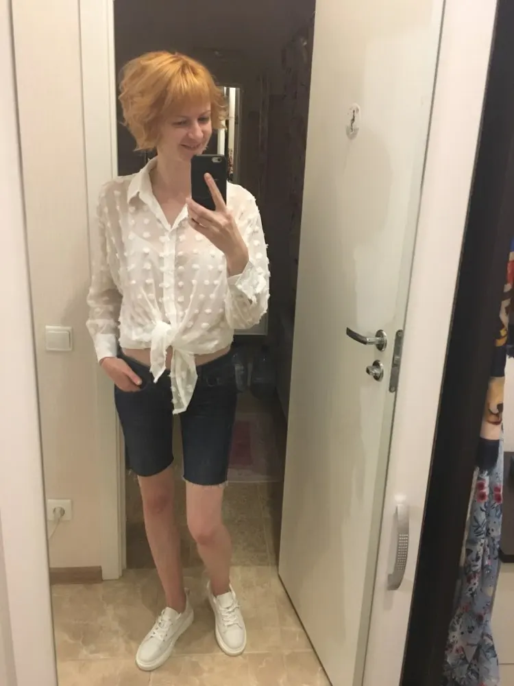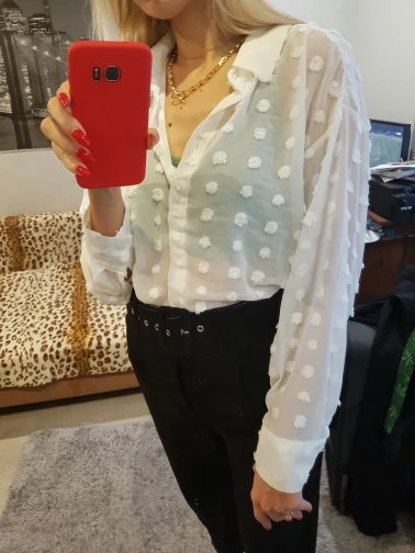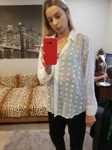 Sweet blouse, came in three weeks. On the parameters 86-66 and height 171 size m looks overweight, you could take a smaller size. The length of the sleeve is full, not short. The blouse itself along the length covers the ass. You can make many images.