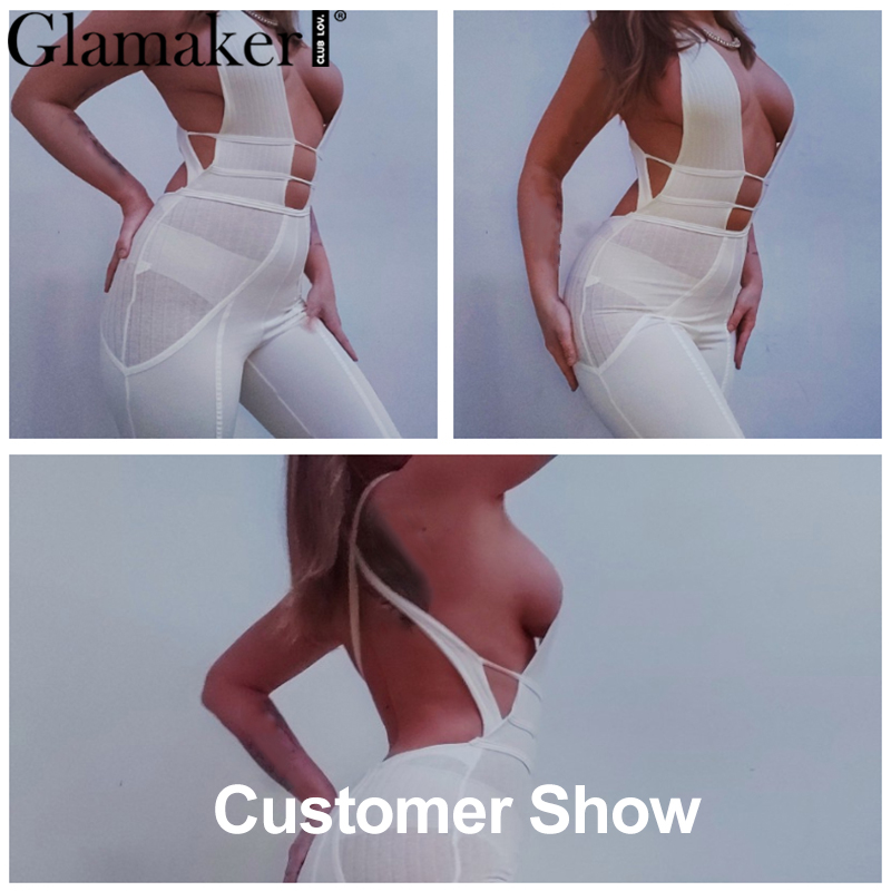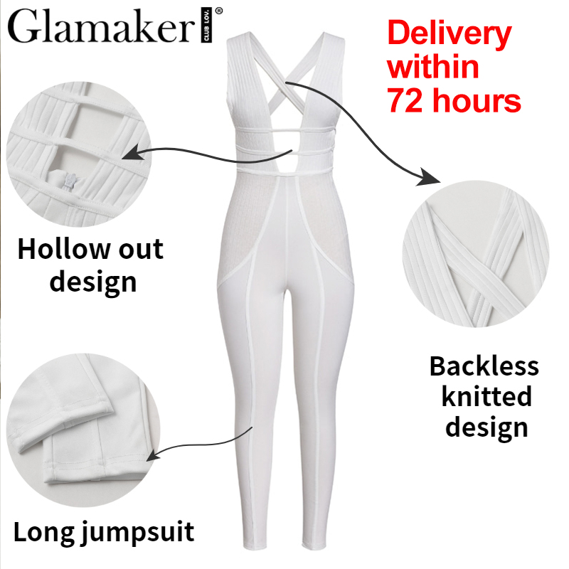White Jumpsuit Knitted V Neck Long Playsuit Overalls L0311