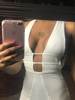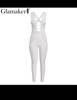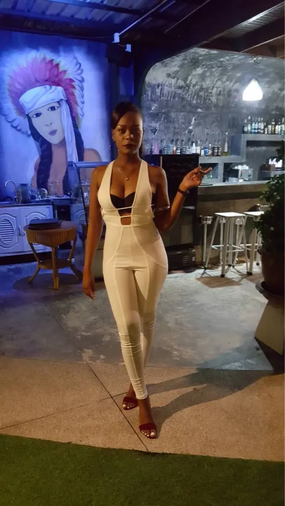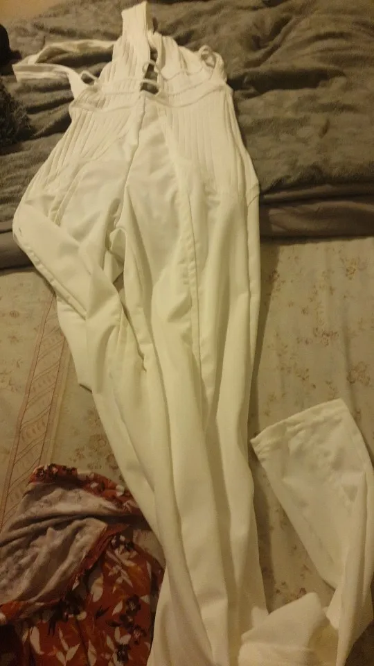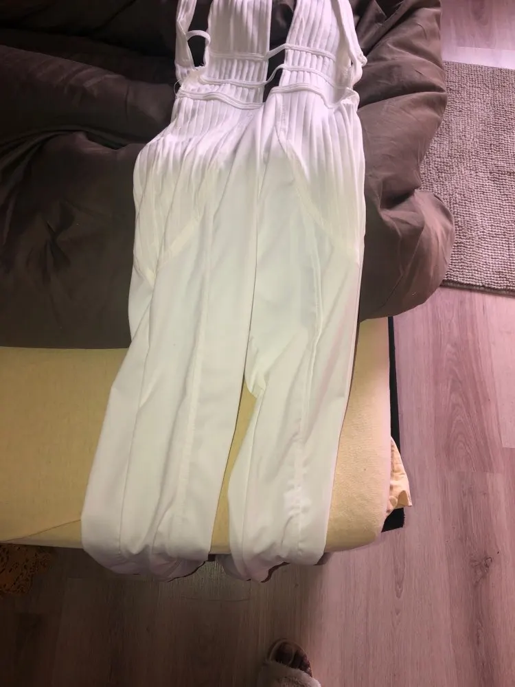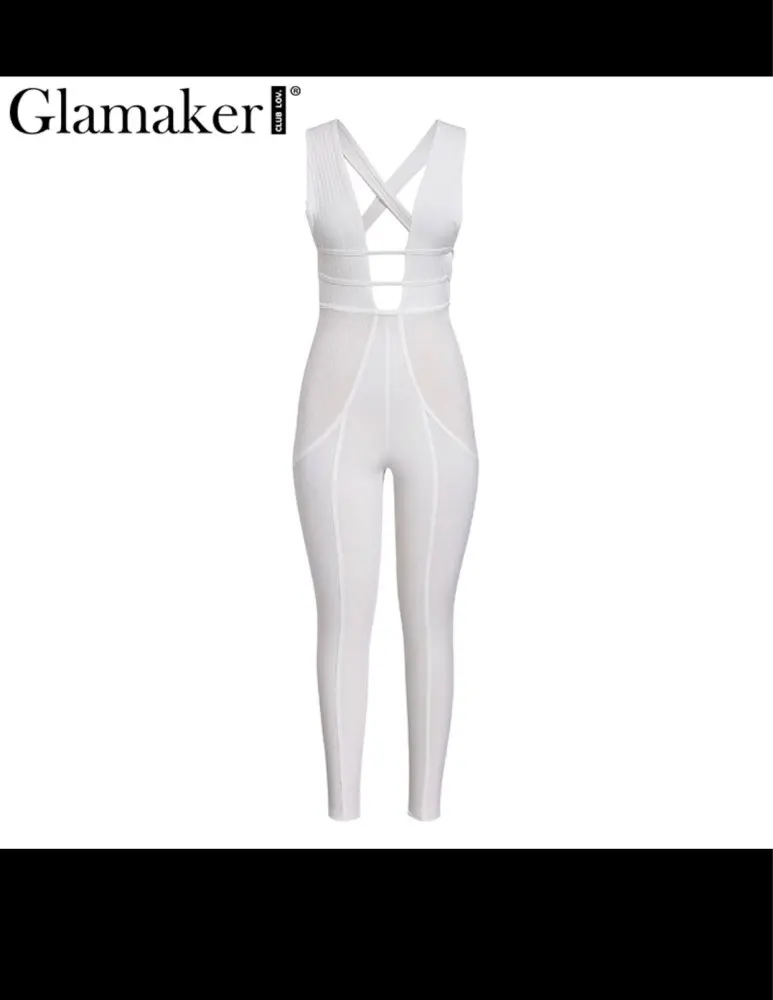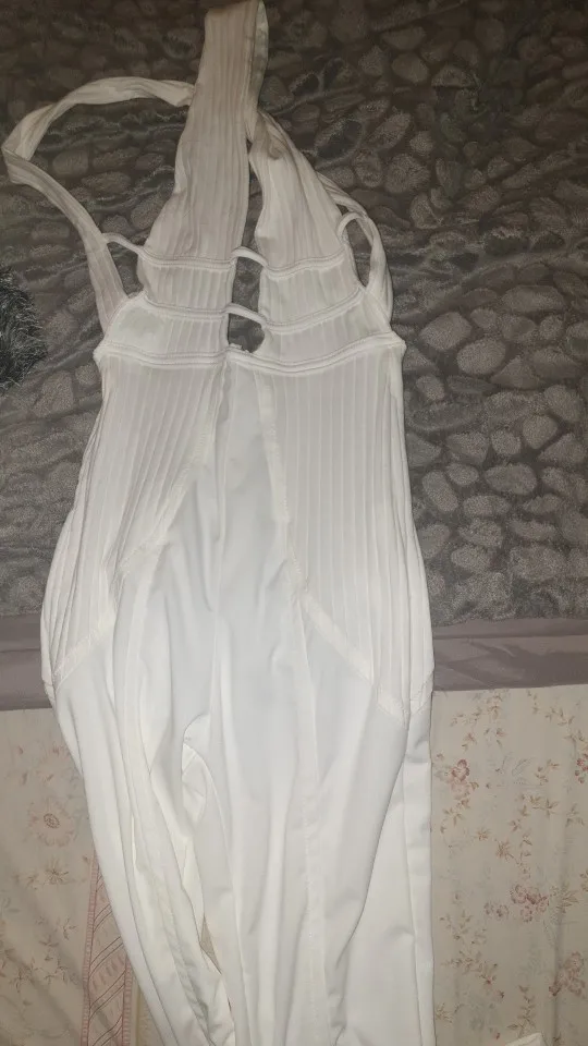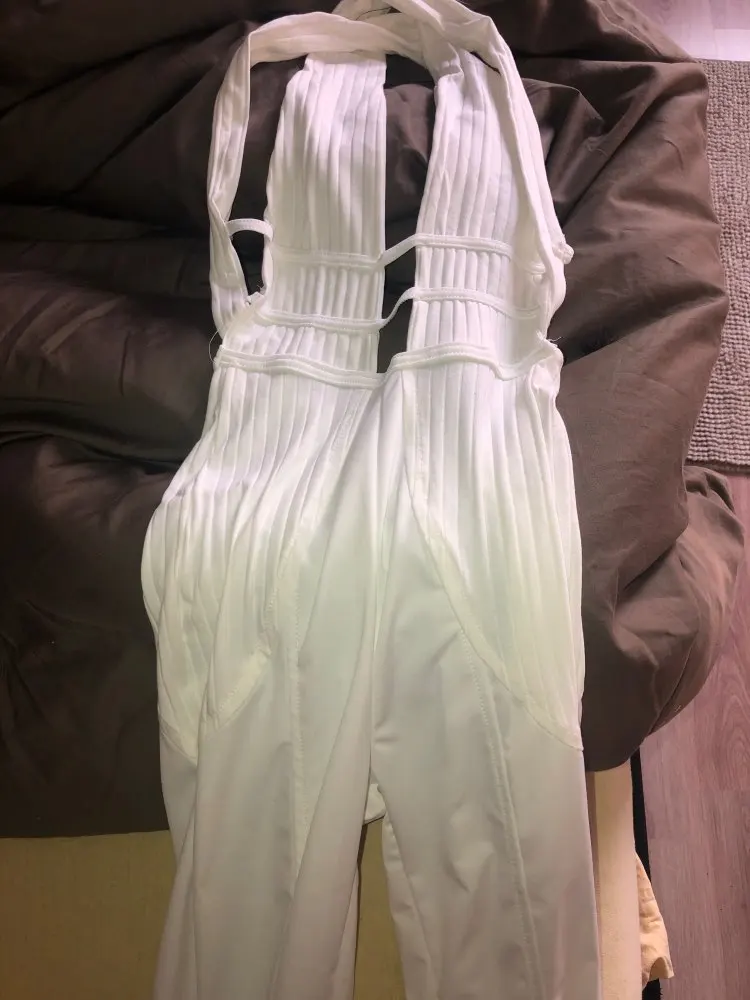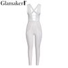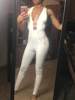 White Jumpsuit Knitted V Neck Long Playsuit Overalls L0311