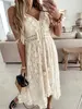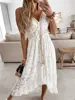 White Lace V-Neck Long Dress Sleeveless Boho Ruffle Maxi Dress for Summer Holidays for Women OUT1025