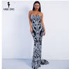 White Sexy Party Gown Retro Geometry Sequin Reflective Dress Floor Length