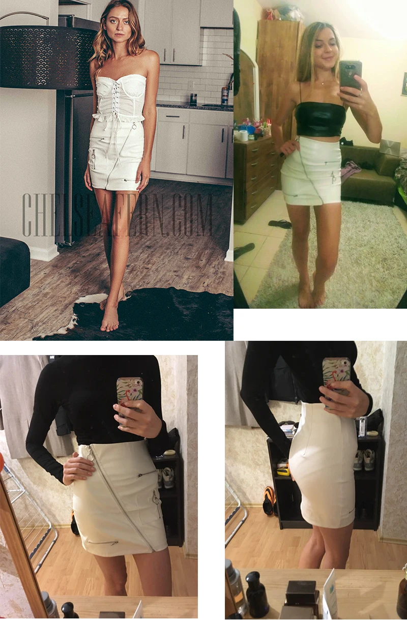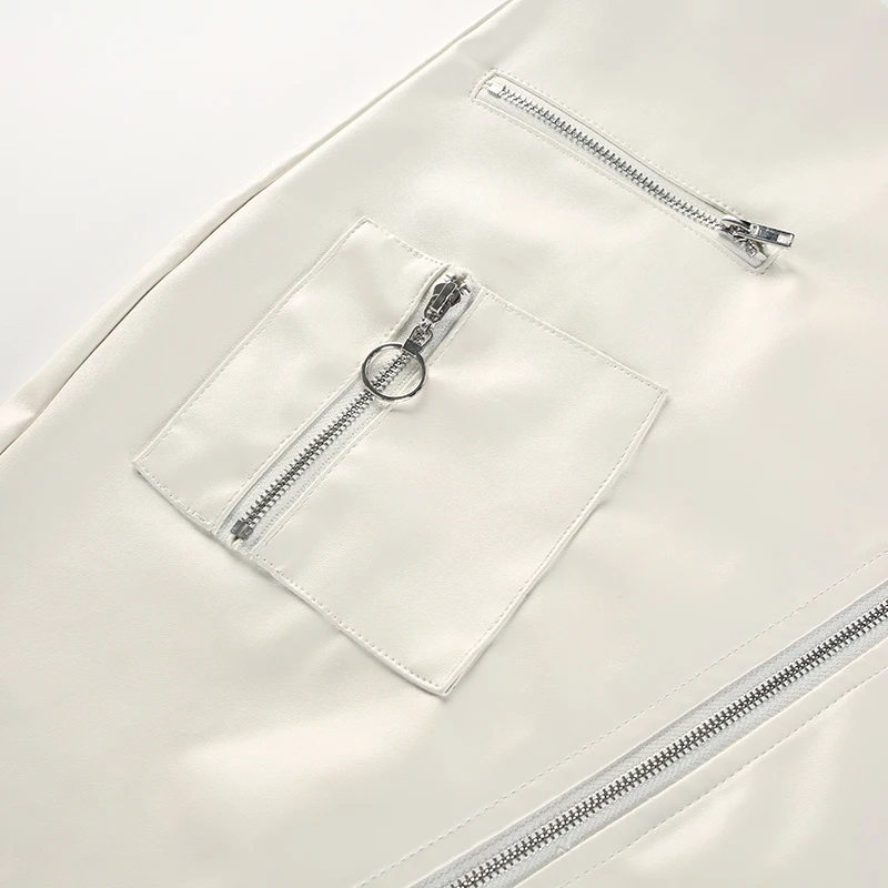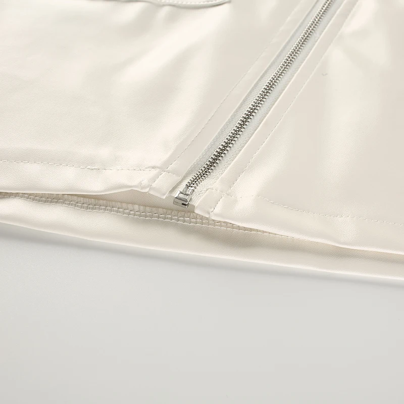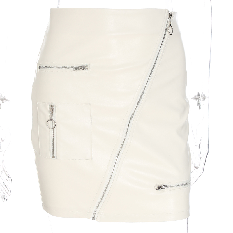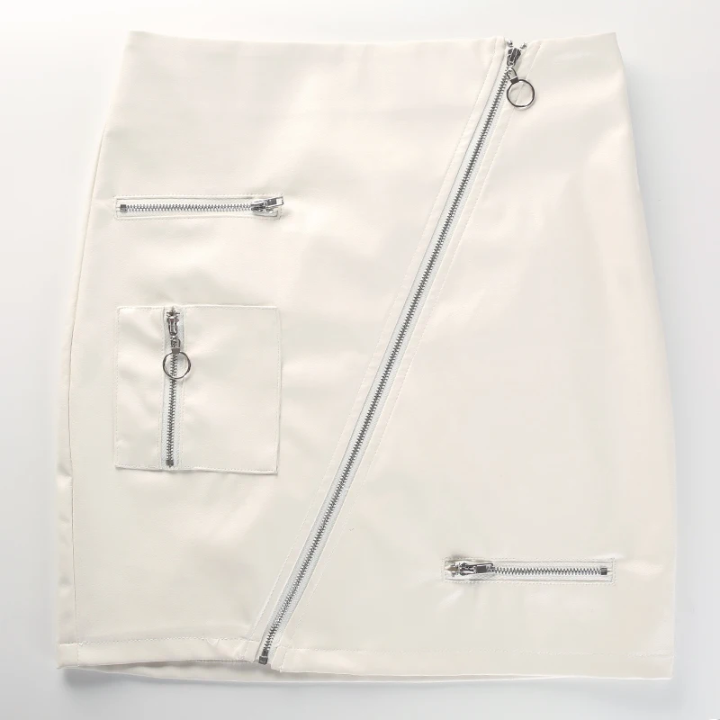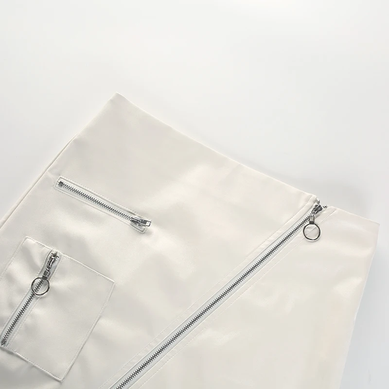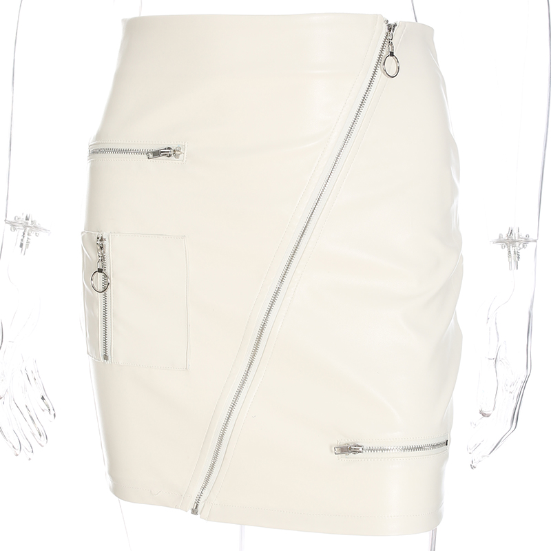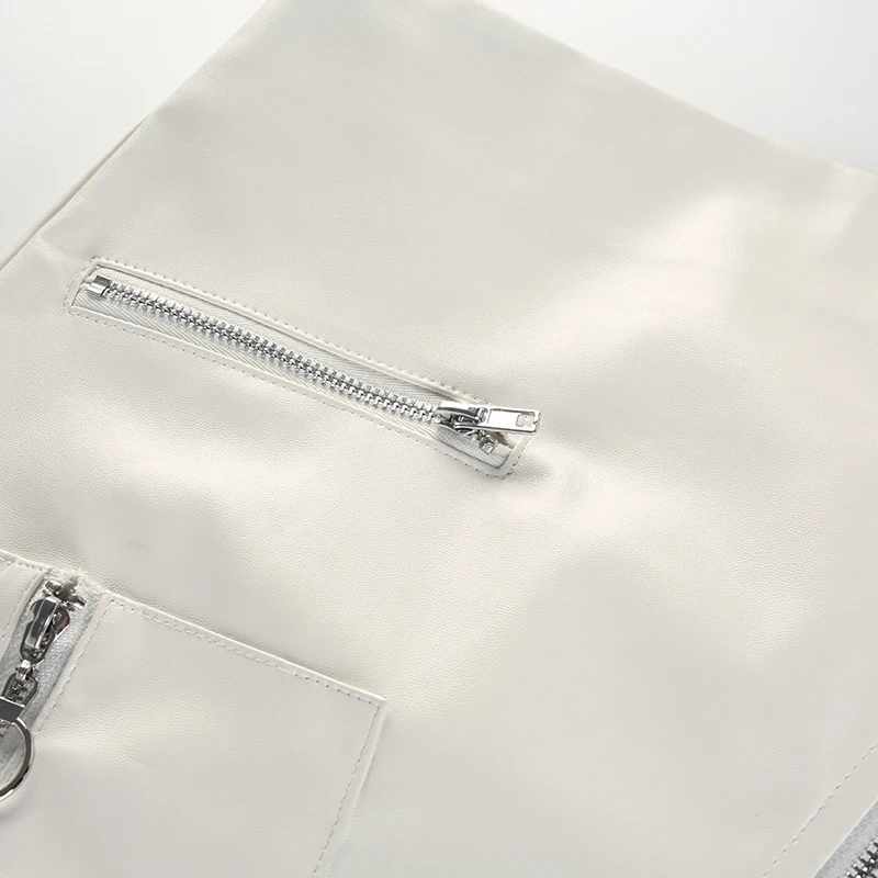 White Solid Boho Beach Style Skirts Womens Zipper A Line Skirt Summer High Waist Leather Short Skirt Elegant Holiday L0198