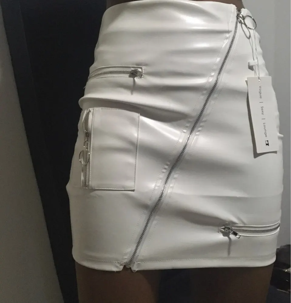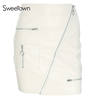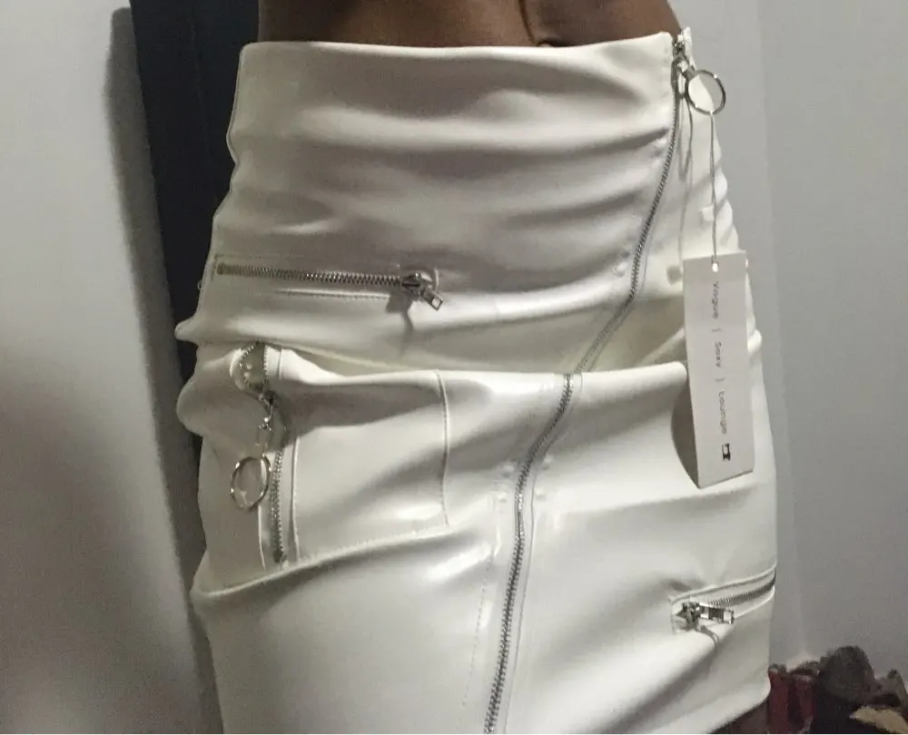 White Solid Boho Beach Style Skirts Womens Zipper A Line Skirt Summer High Waist Leather Short Skirt Elegant Holiday L0198