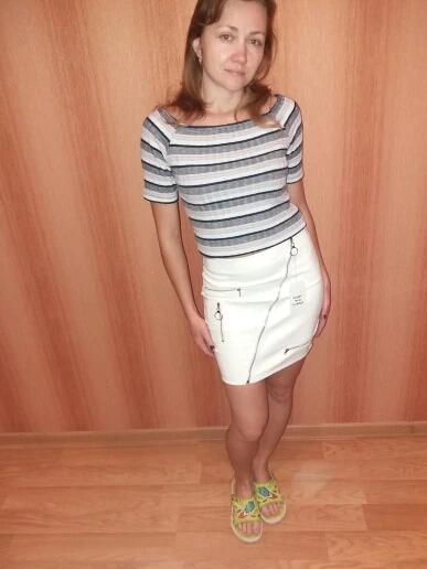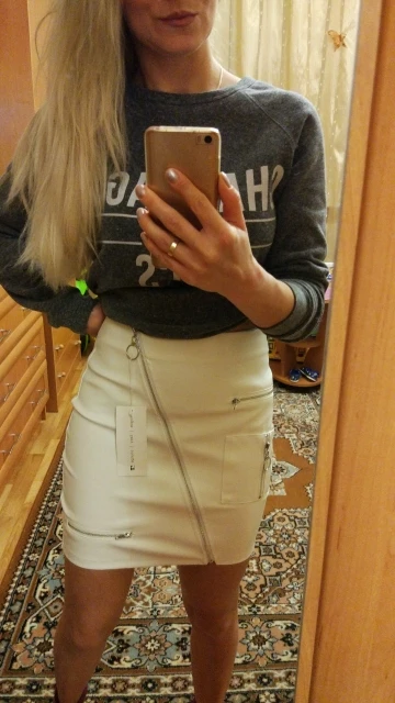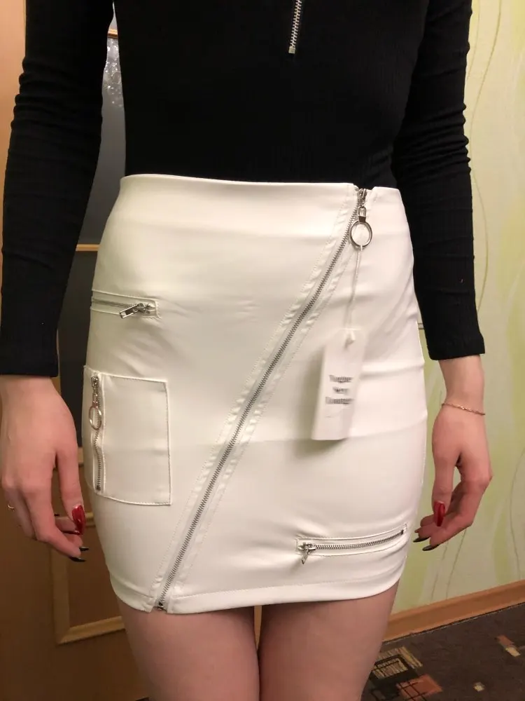 The skirt is beautiful. Snow-white leather deputy. Parameters 85/67/94