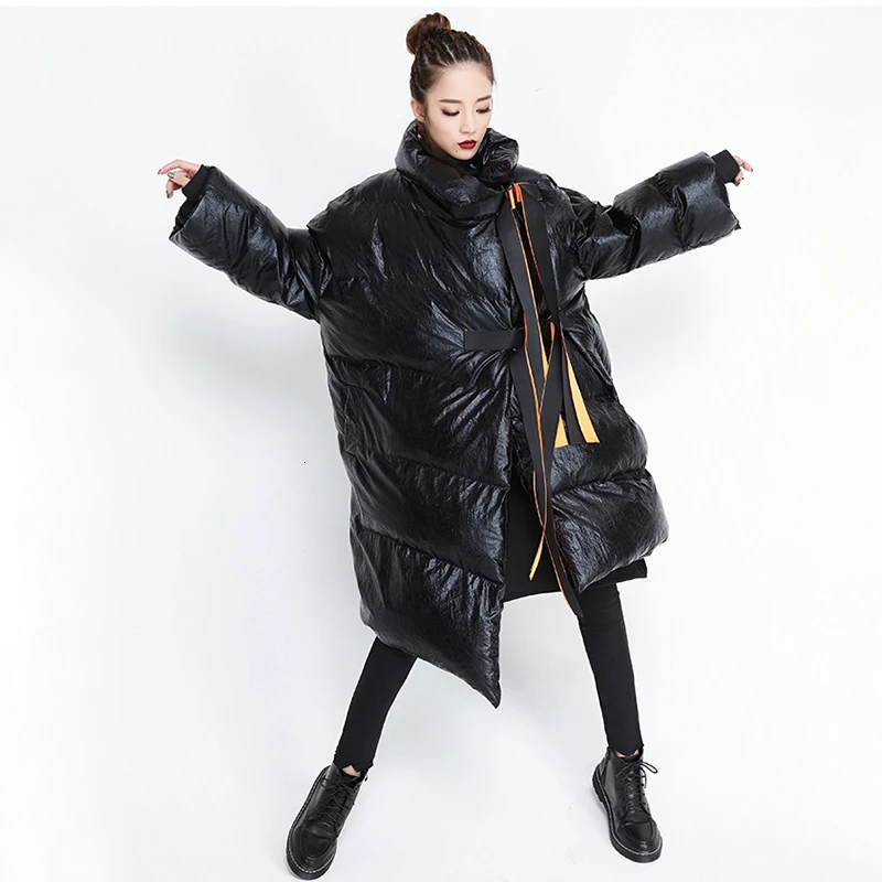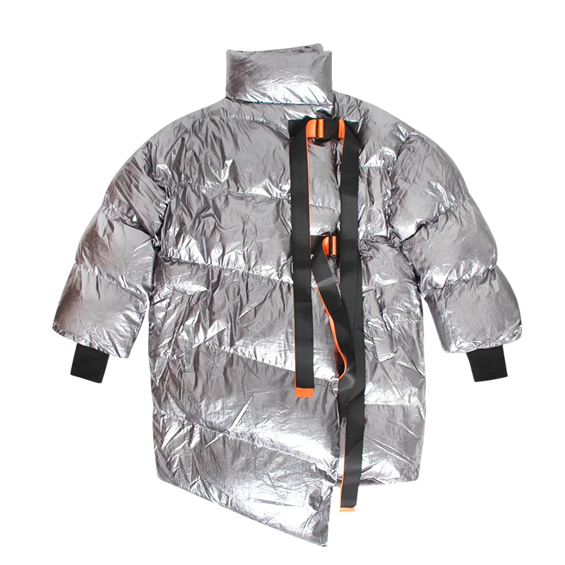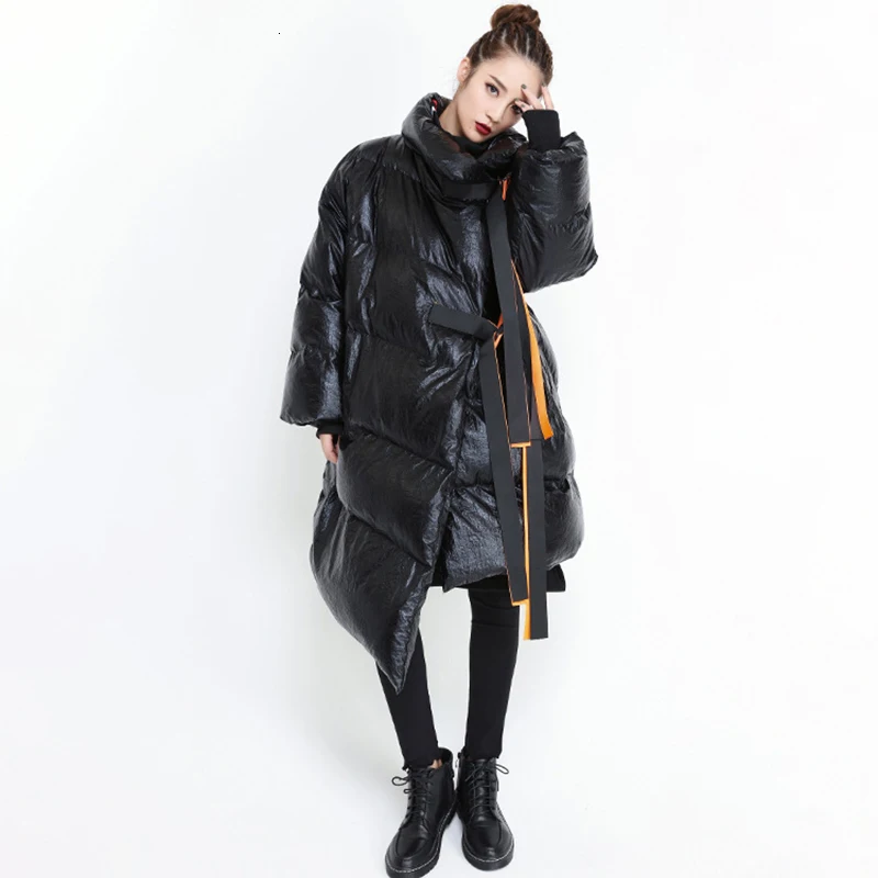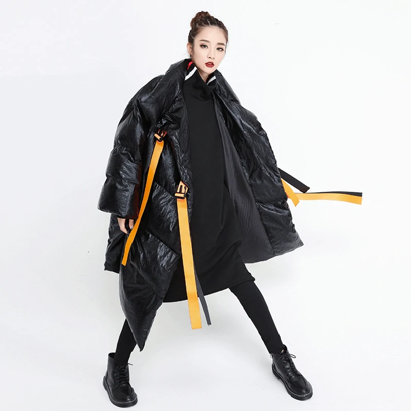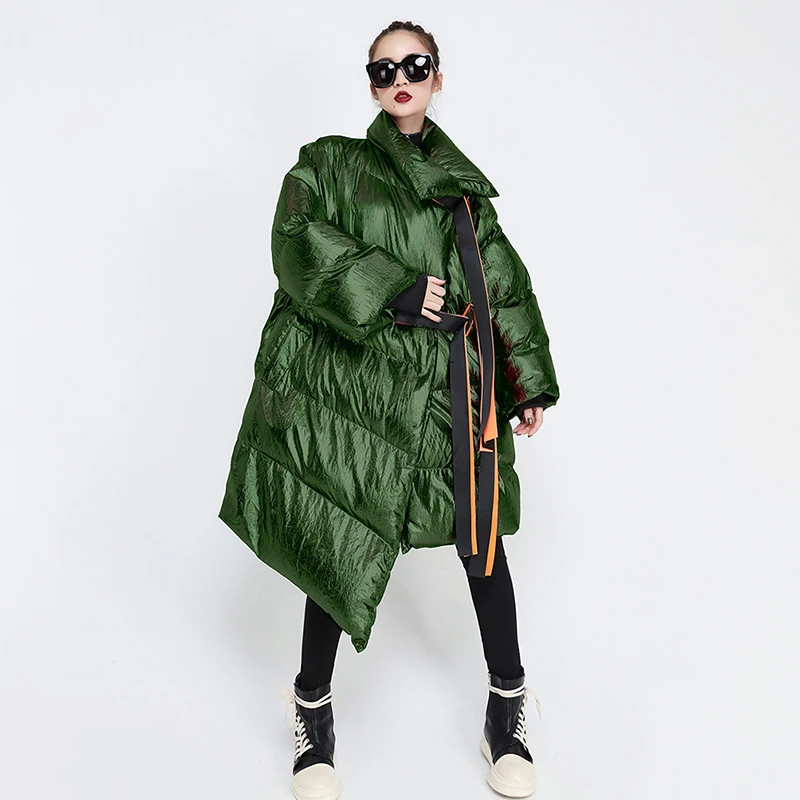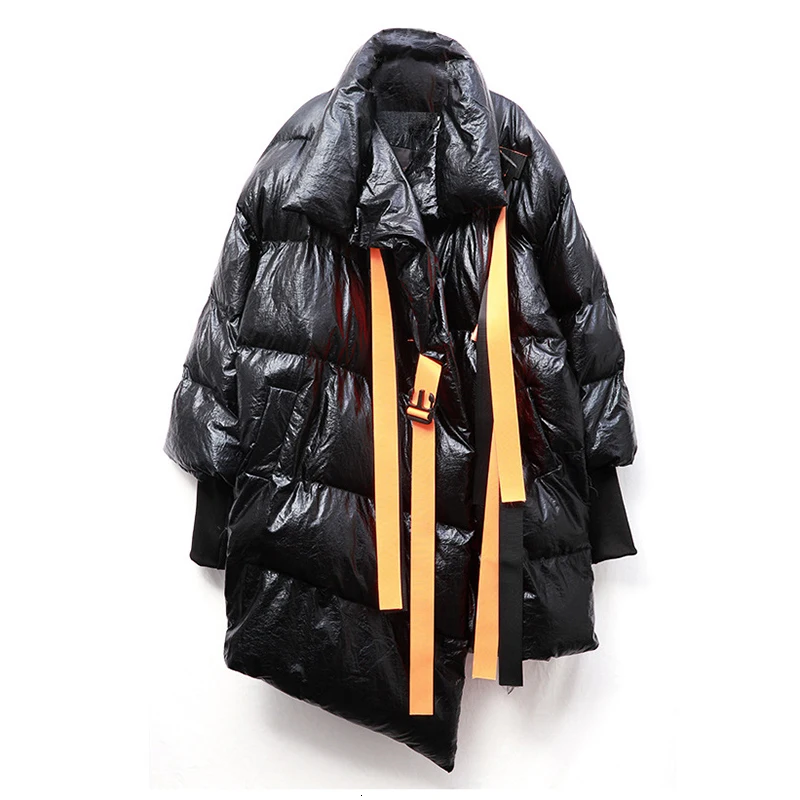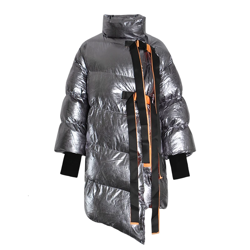 Winter Down Ribbons Irregular Jacket Long Sleeve Patchwork