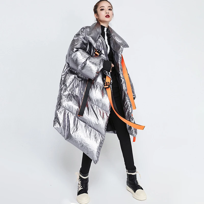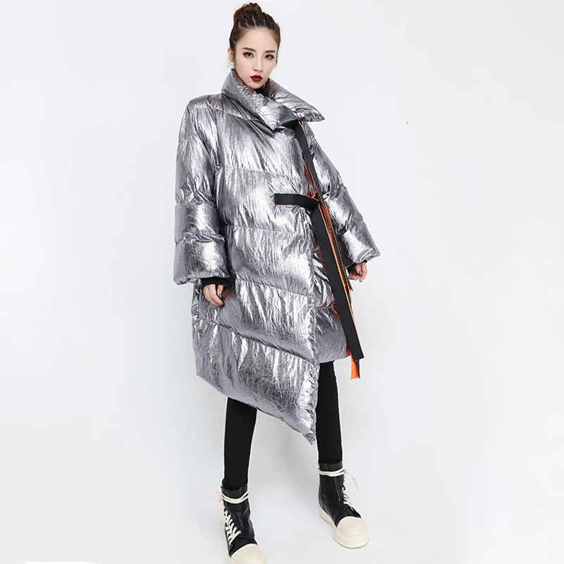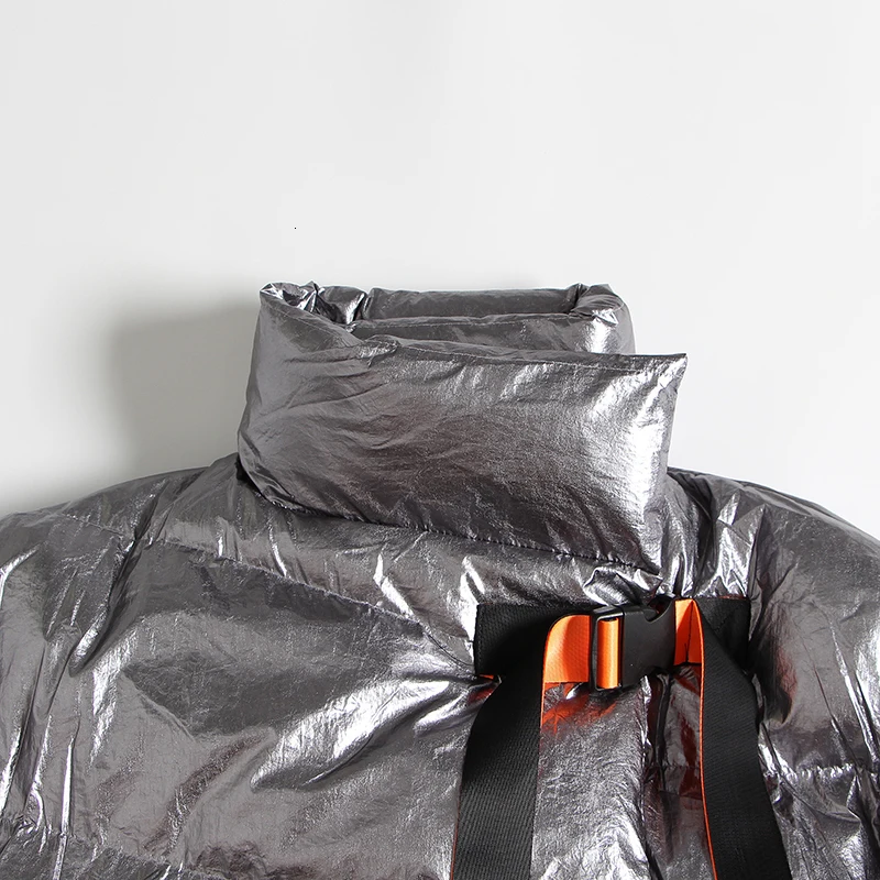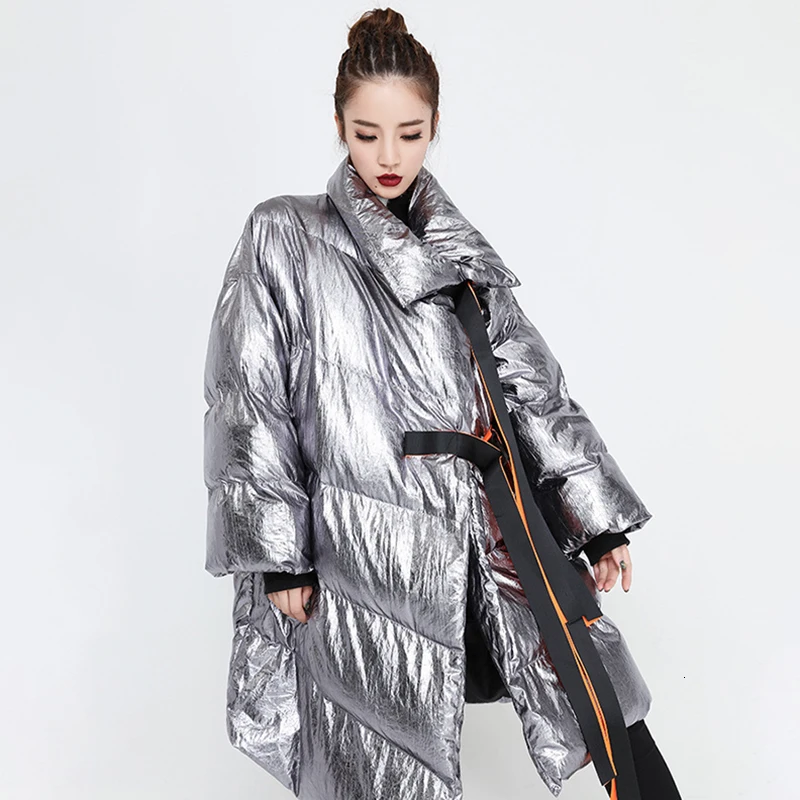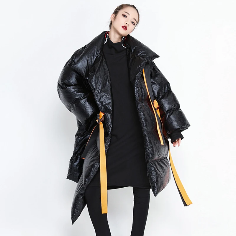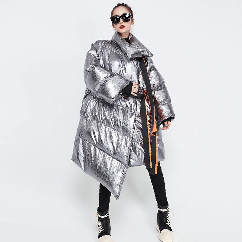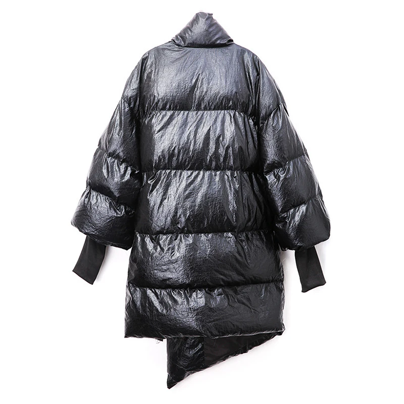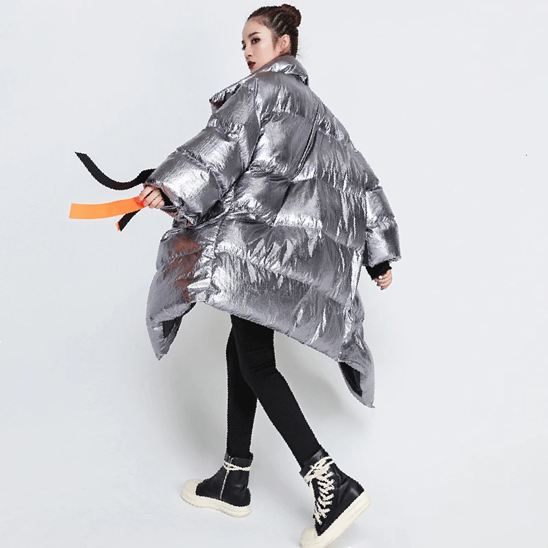 Winter Down Ribbons Irregular Jacket Long Sleeve Patchwork