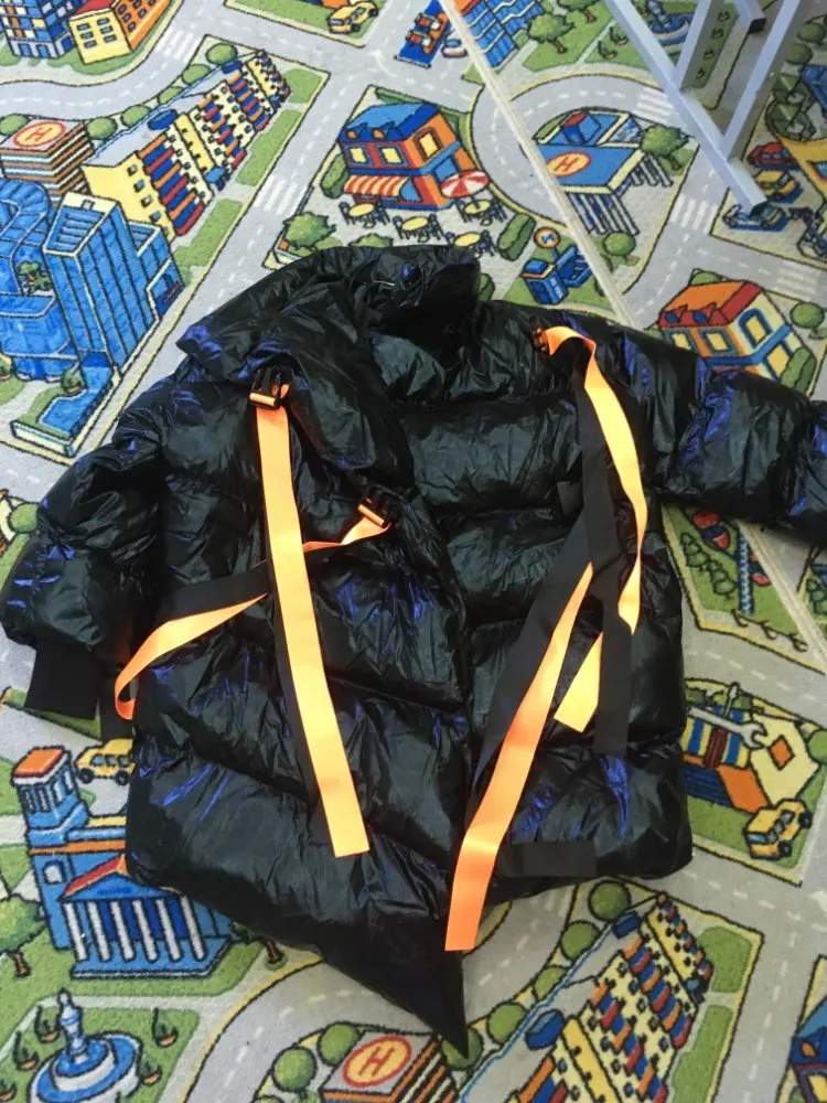Winter Down Ribbons Irregular Jacket Long Sleeve Patchwork