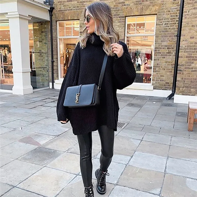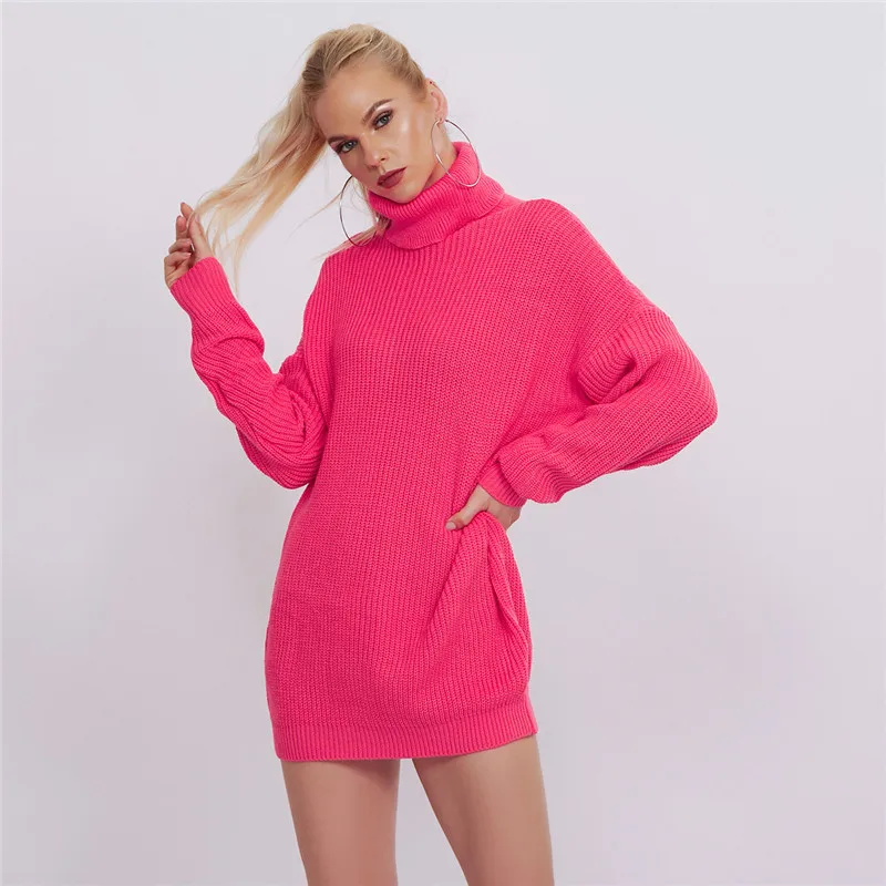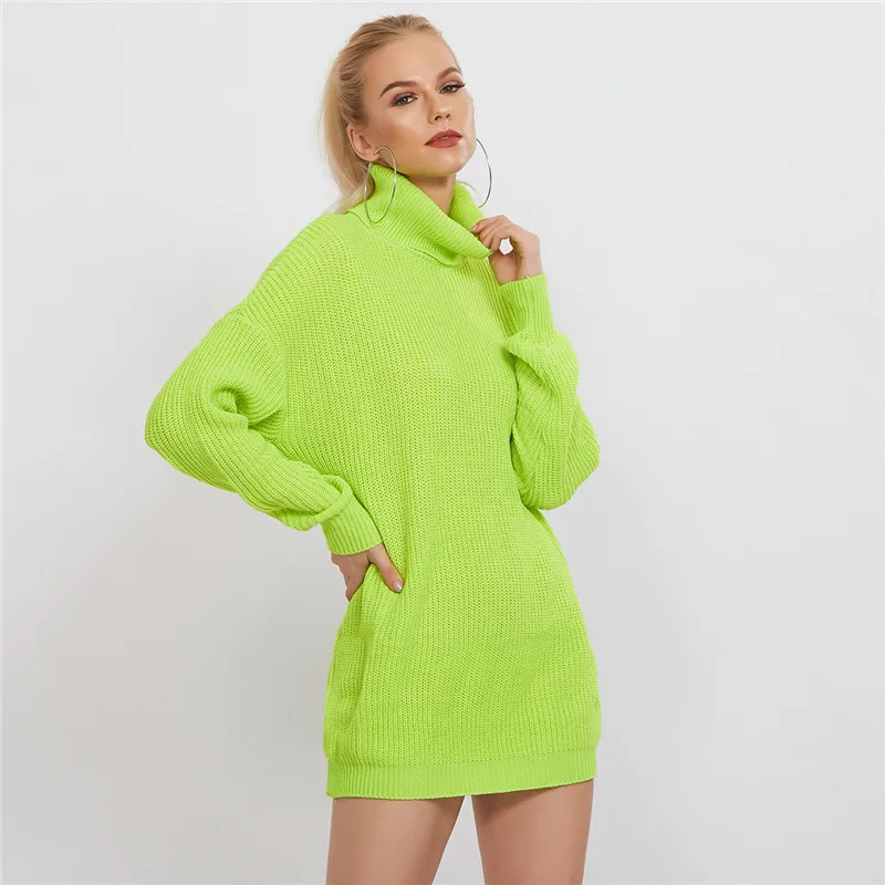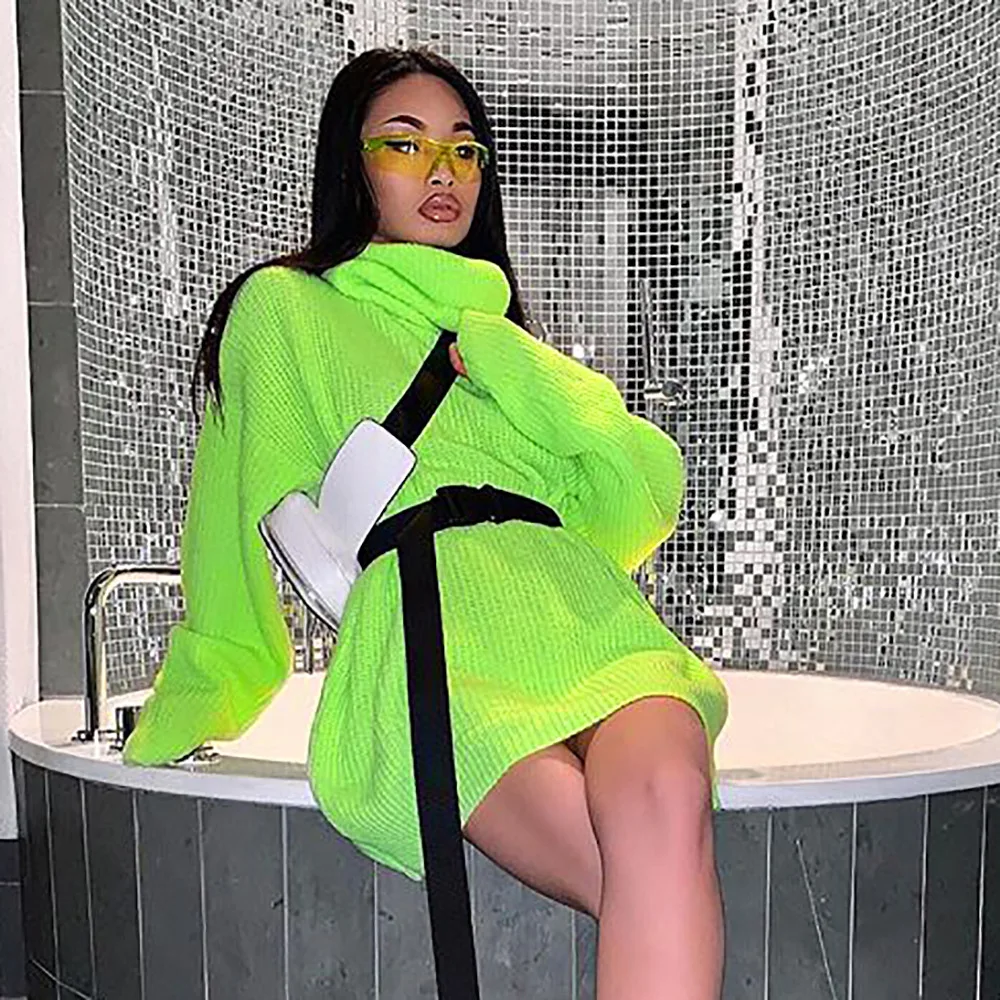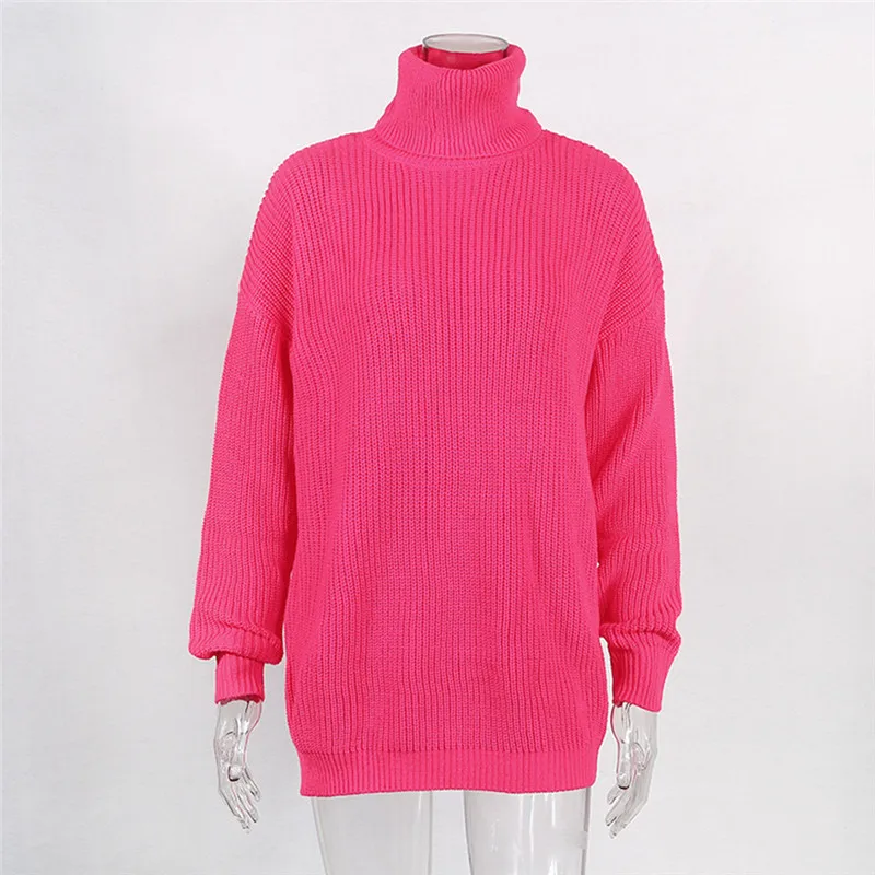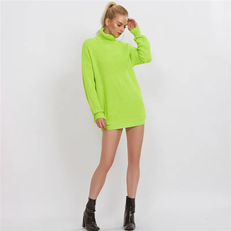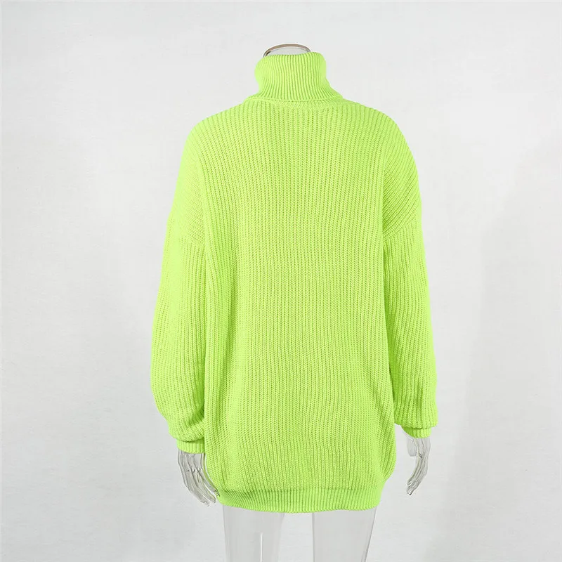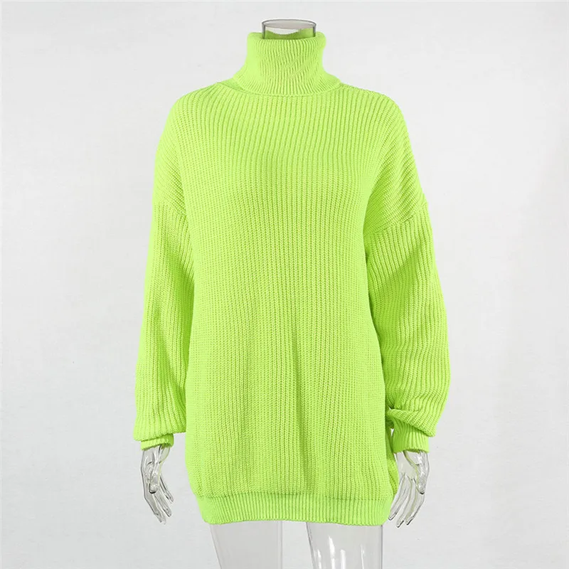 Winter Fashion Oversized Sweater Turtleneck Neon Color