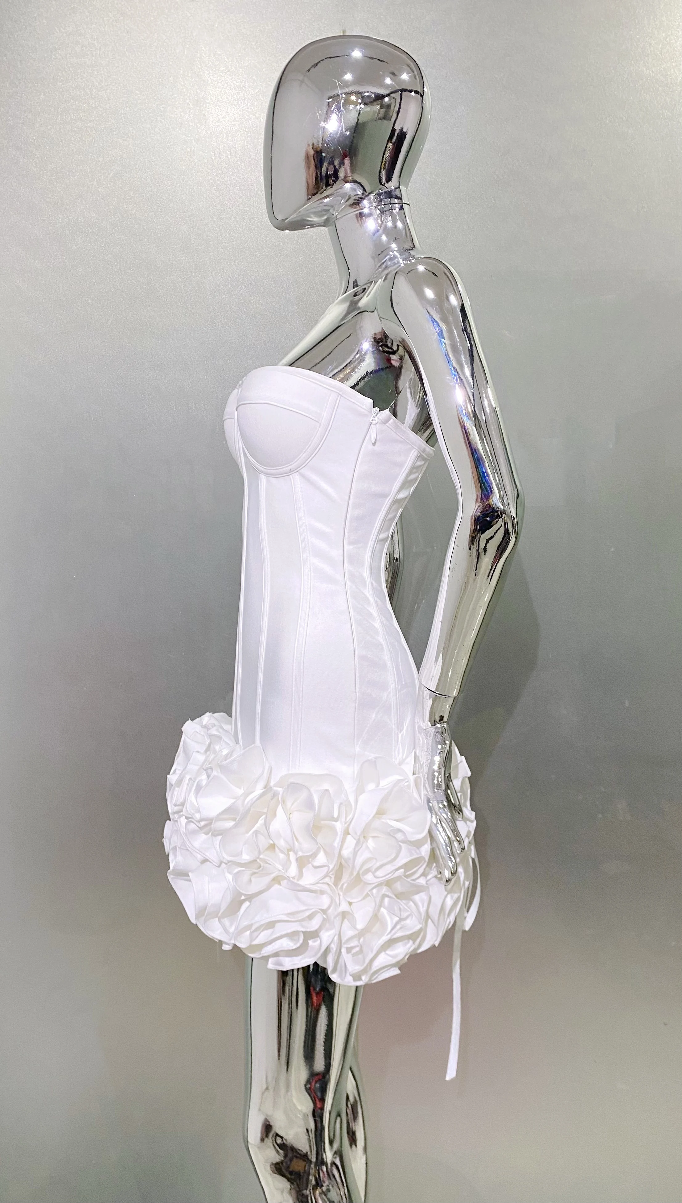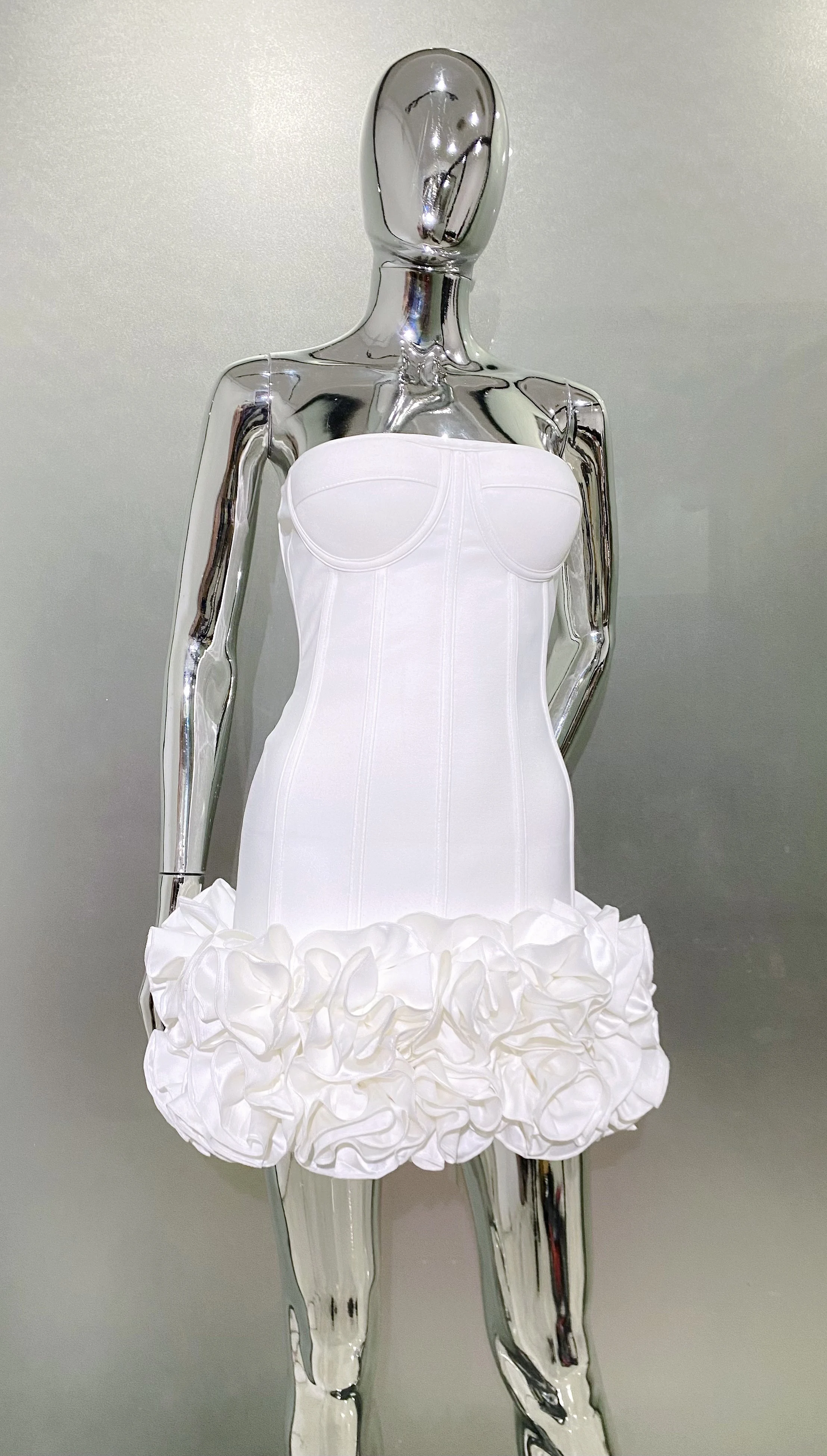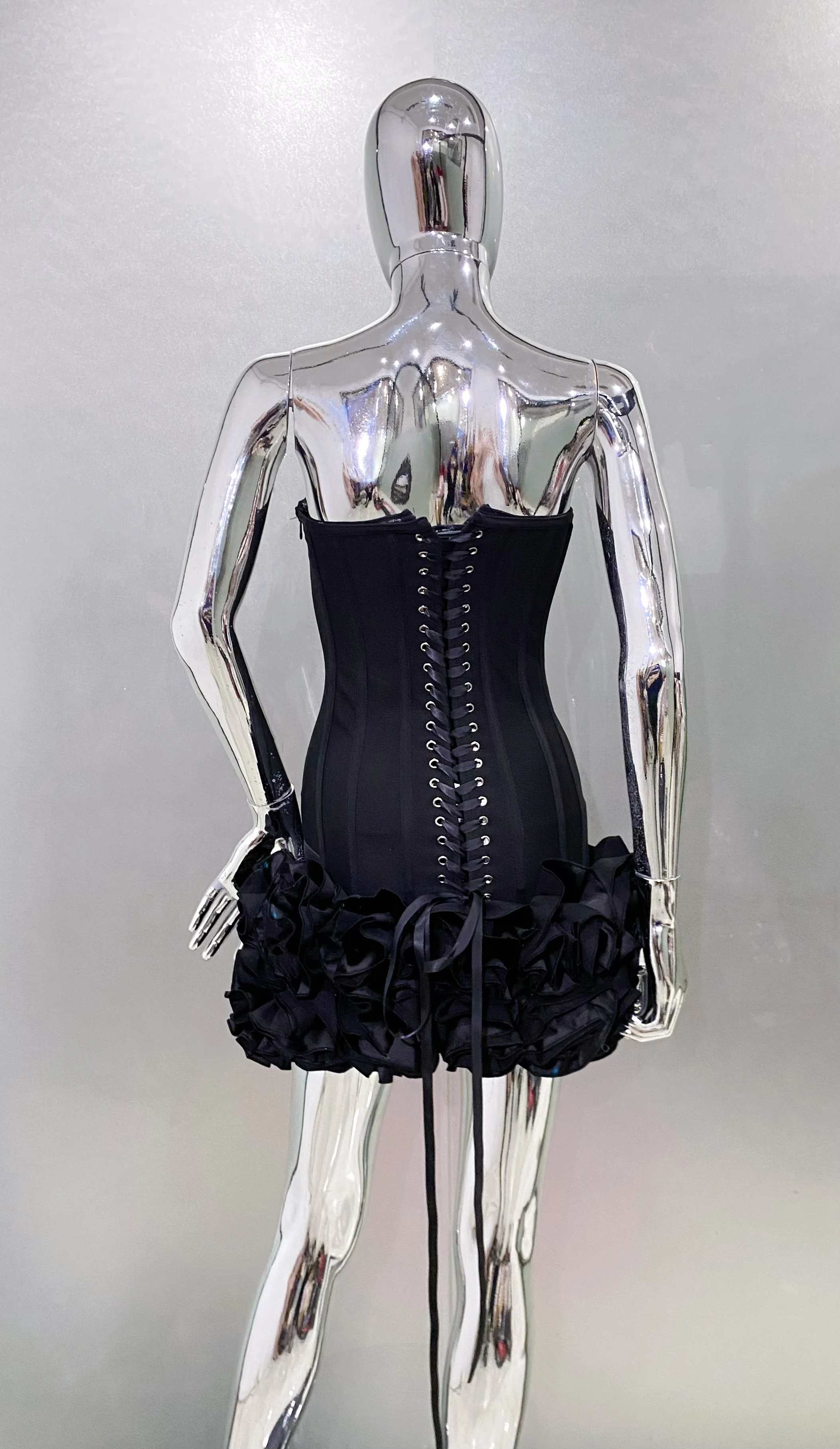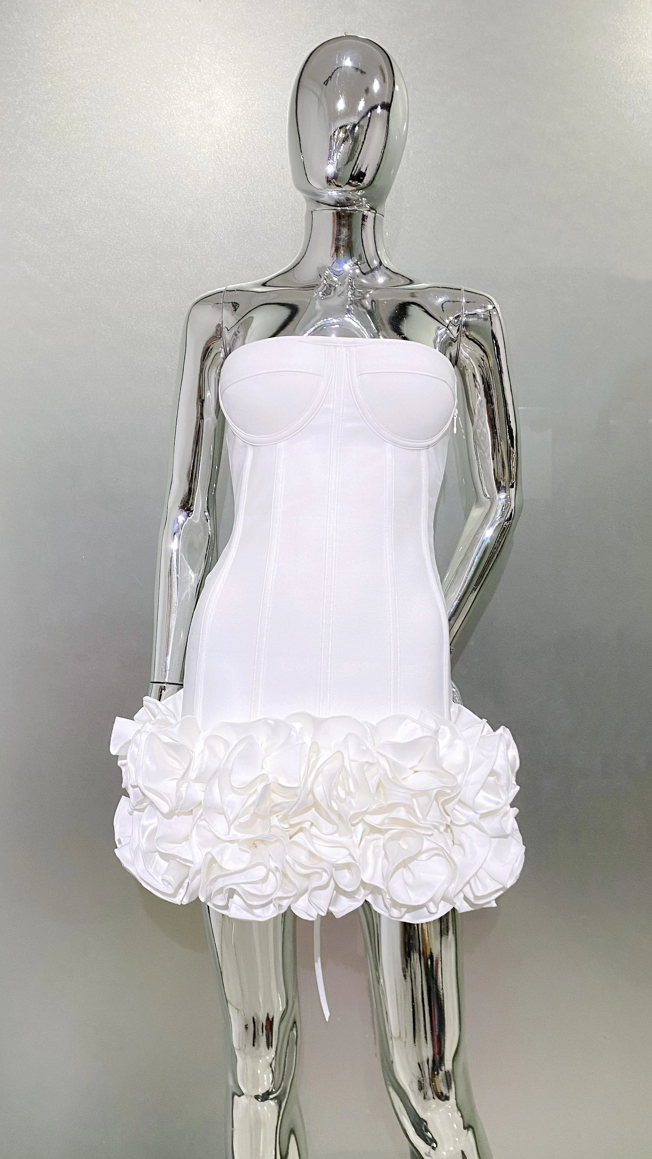 Women 2025 Elegant Red Strapless Corset Mini Dress Ruffle Rose Skirt Bodycon Party Dress OUT1036