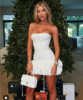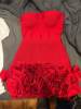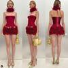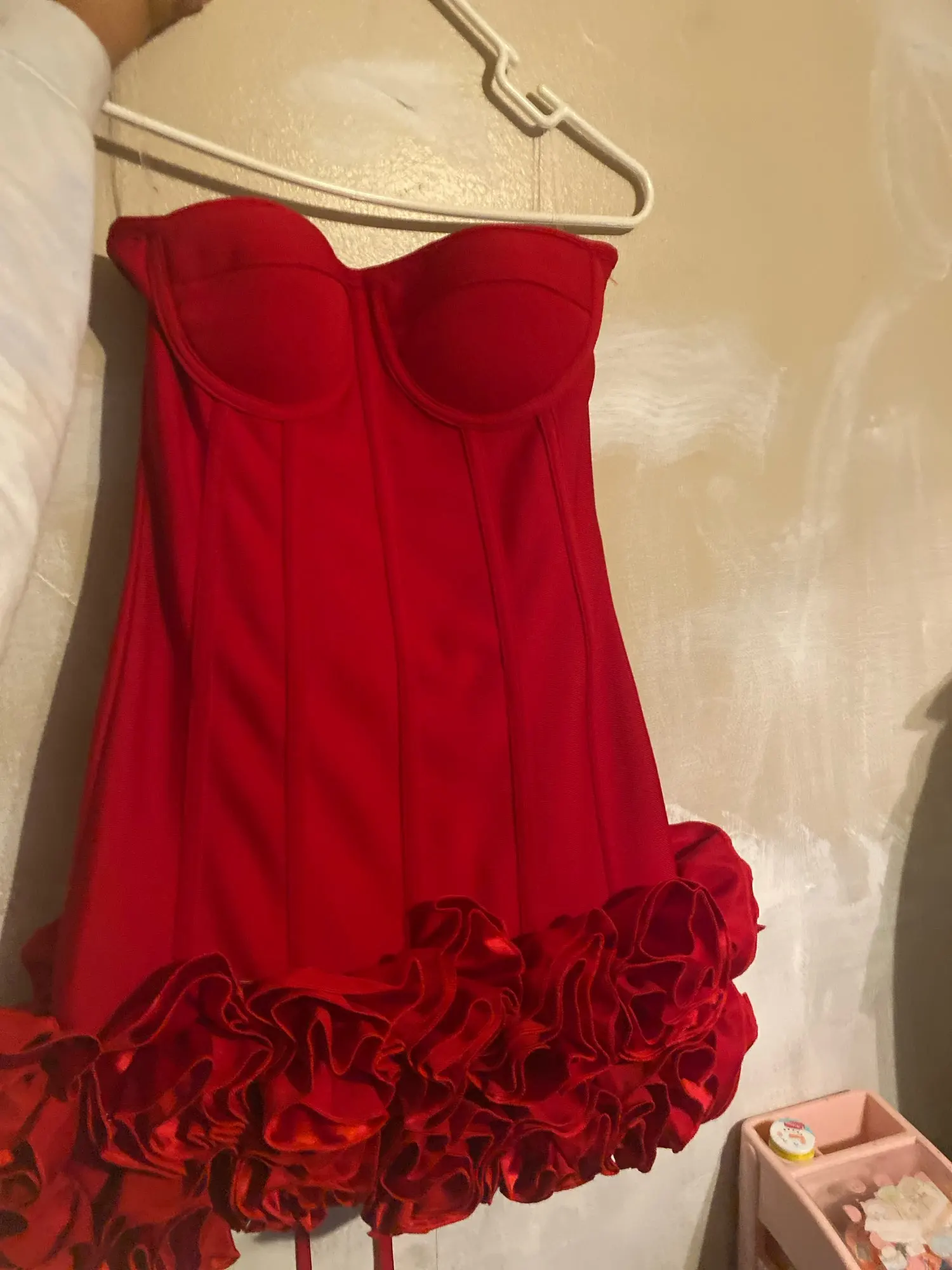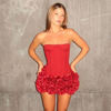 Women 2025 Elegant Red Strapless Corset Mini Dress Ruffle Rose Skirt Bodycon Party Dress OUT1036