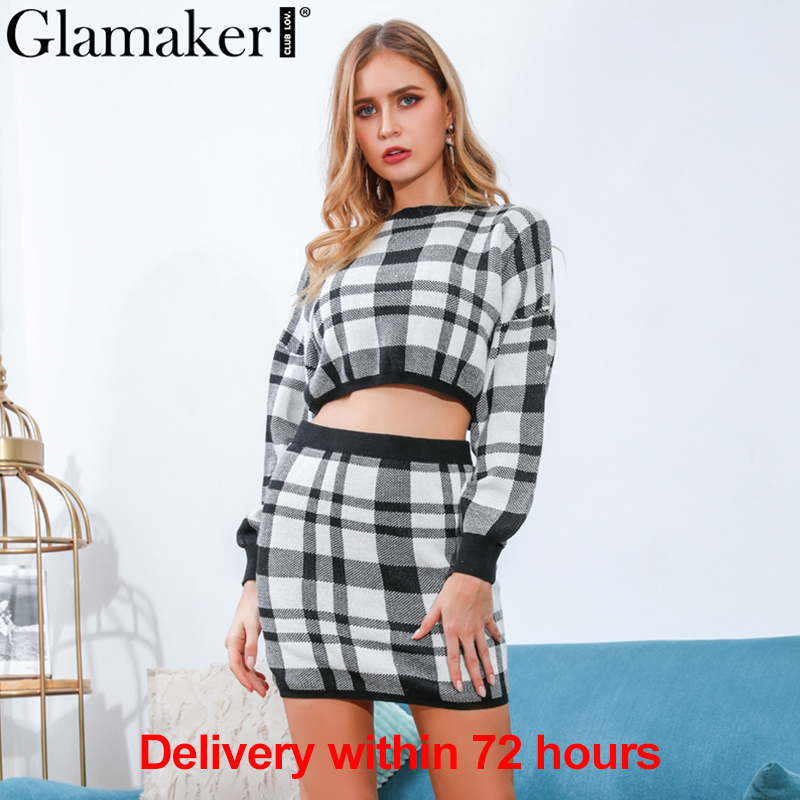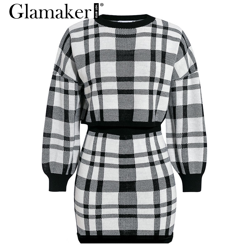 Women Autumn Elegant Dress Striped Knitted Plaid 2 Piece Set Teen Fashion Winter Outfits L0310