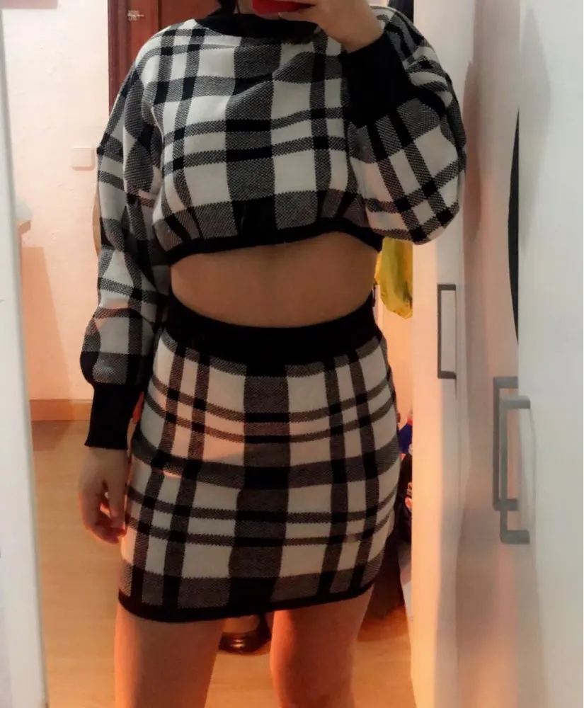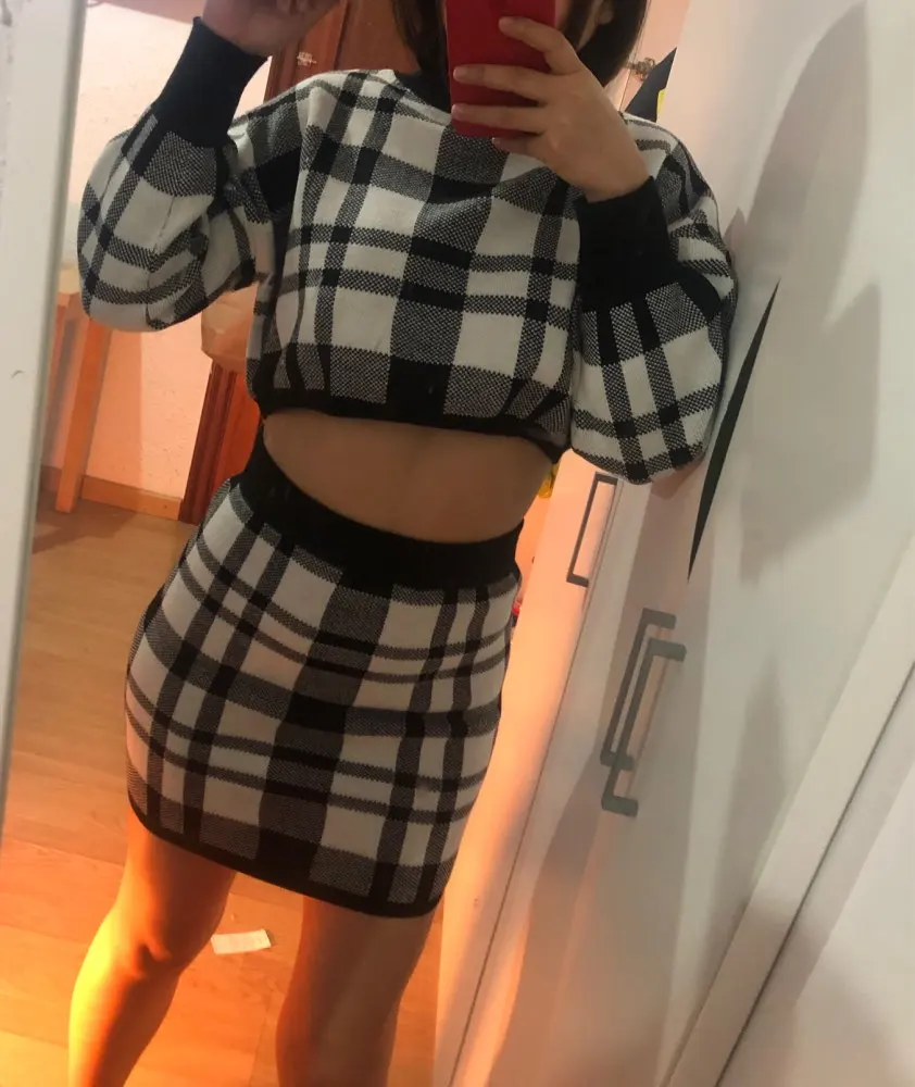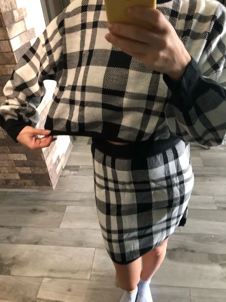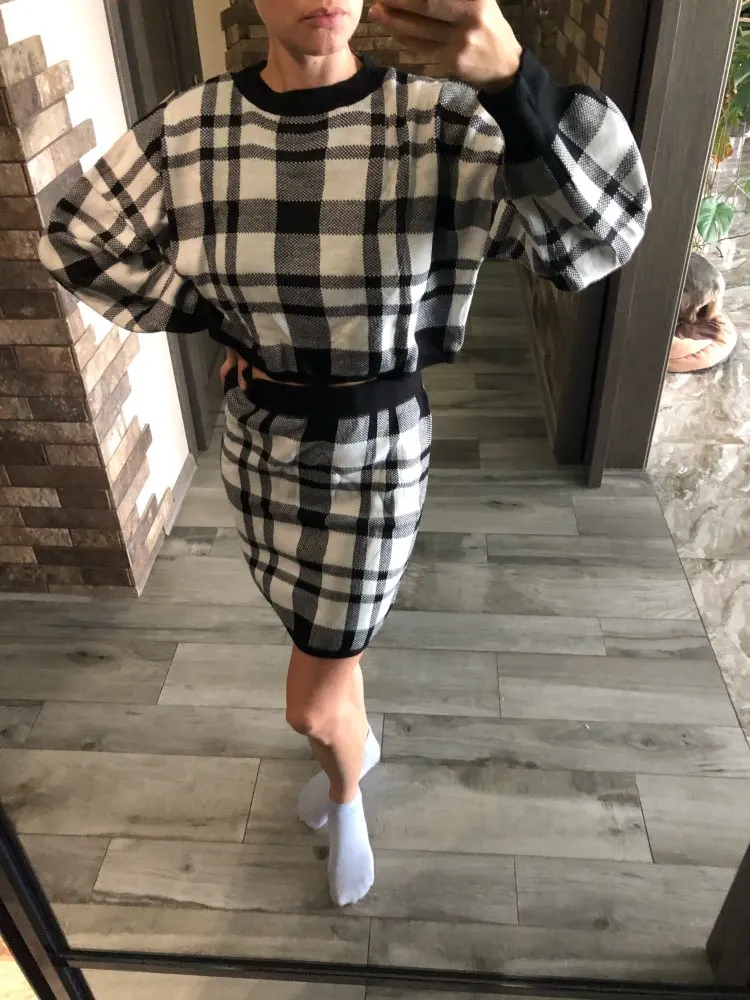 Women Autumn Elegant Dress Striped Knitted Plaid 2 Piece Set Teen Fashion Winter Outfits L0310