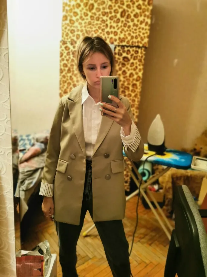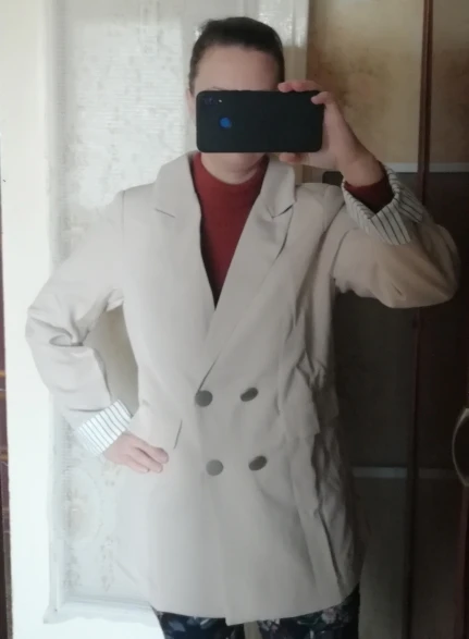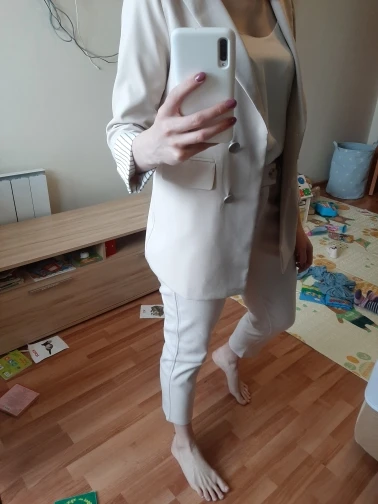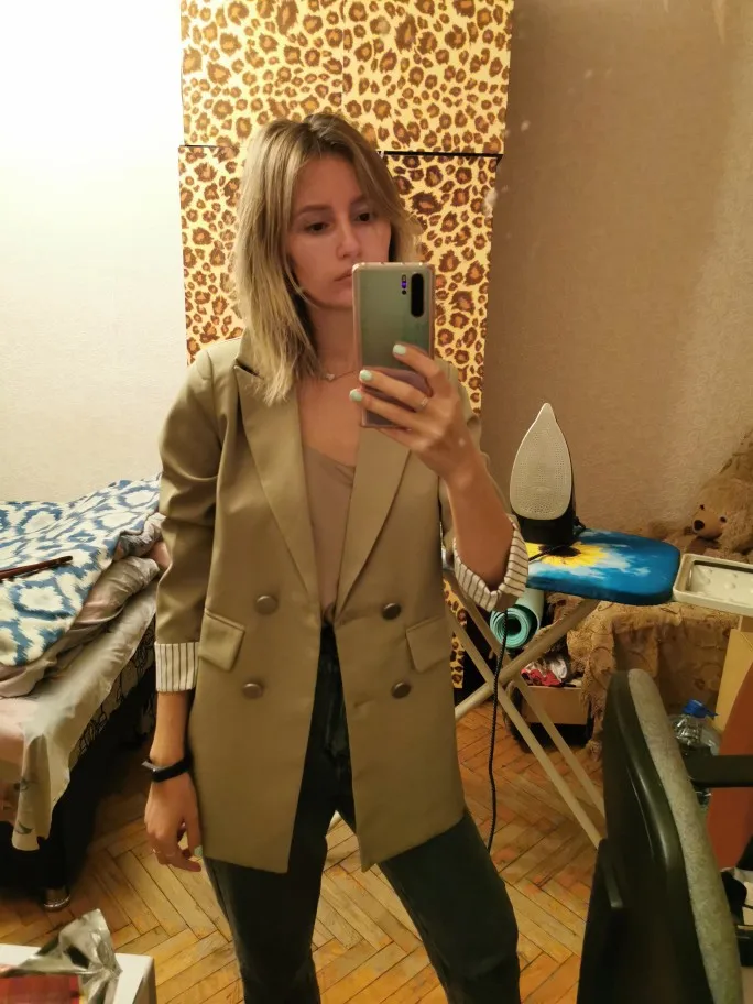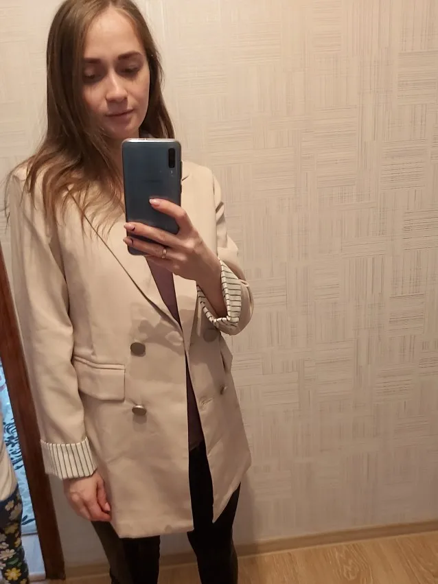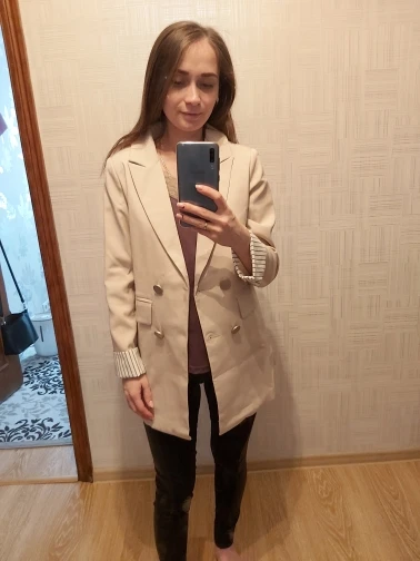 Пиджак супер! Доставка 2 недели в Ростовскую область. Соответствует описанию, очень классный крой, сидит немного оверсайз, но плечи на месте и в рукавах свободно, как на заказ). Ещё отпарю немного и будет норм. Мои параметры 75-95-95, XL сел отлично. На рост 160 рукава до кисти, не укороченные. Ткань синтетика, но качественная, сшит аккуратно, подкладка ровная, ниток торчащих нет. В подарок положили резинку) К покупке однозначно рекомендую. Продавцу спасибо!