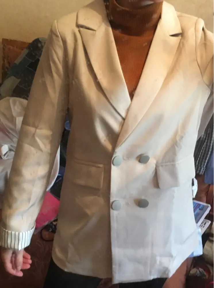 Beautiful blazer, identical to the photo. I recommend it 100%