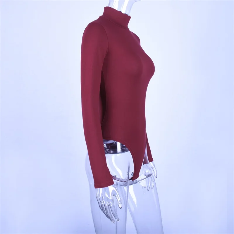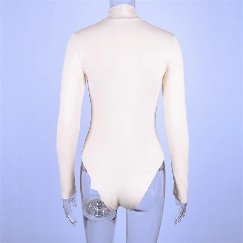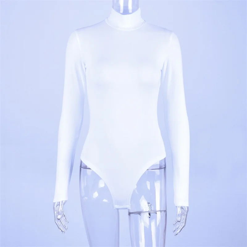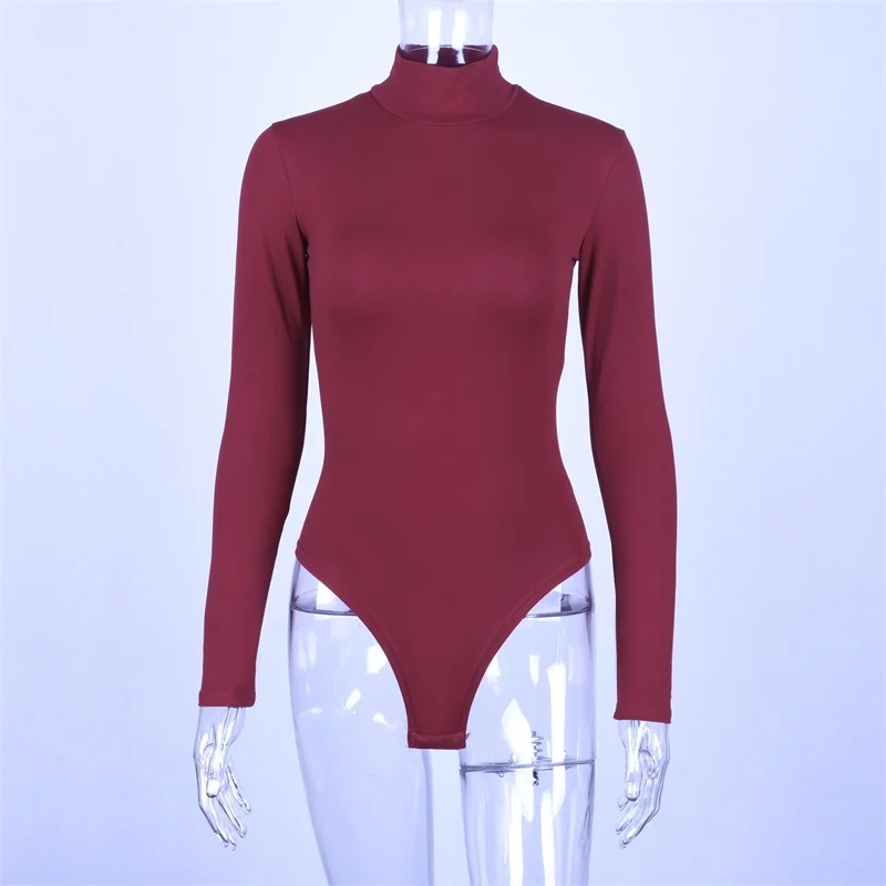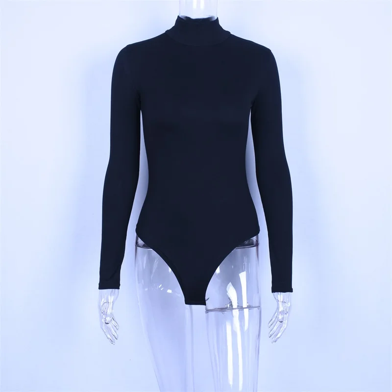 Women Bodycon Slim Fit High Neck Long Sleeve Solid Bodysuit L0228
