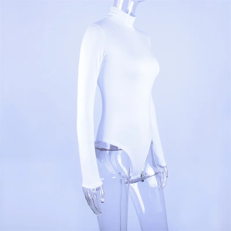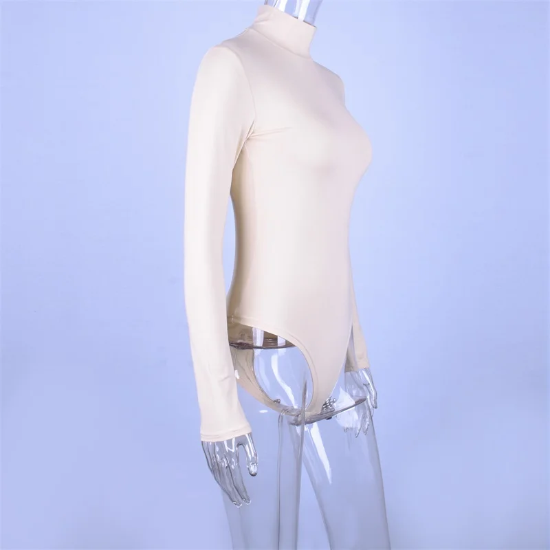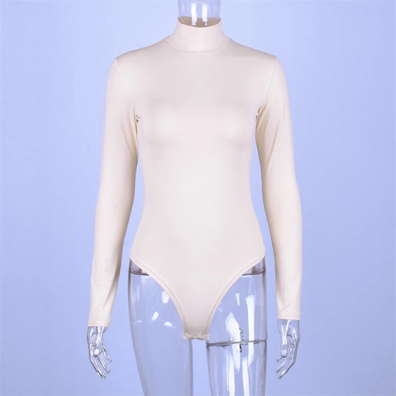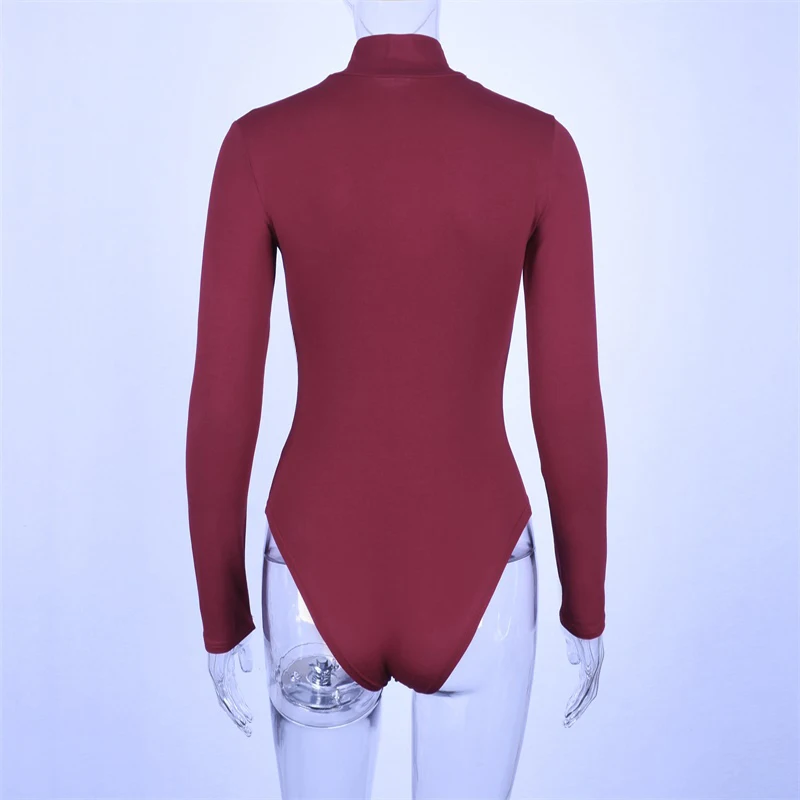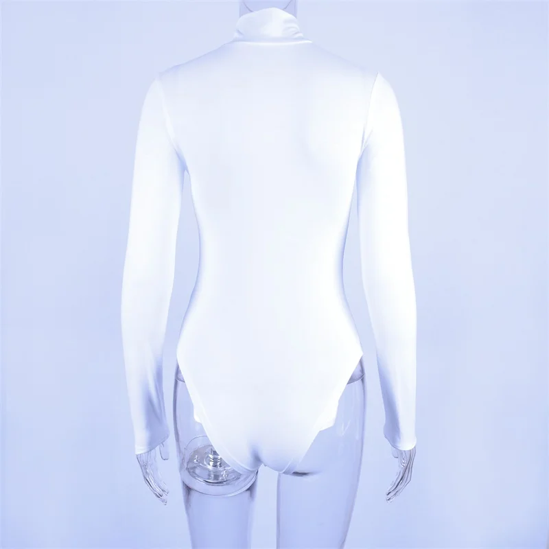 Women Bodycon Slim Fit High Neck Long Sleeve Solid Bodysuit L0228