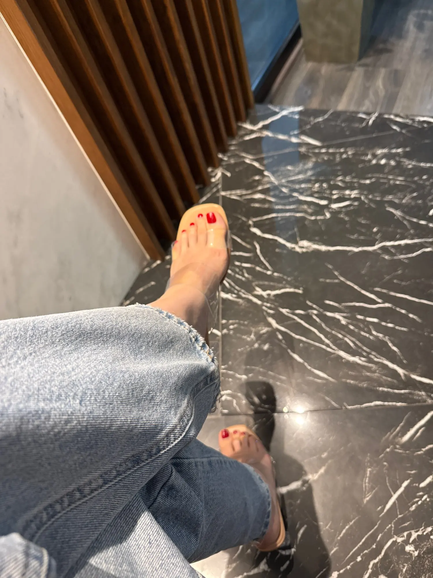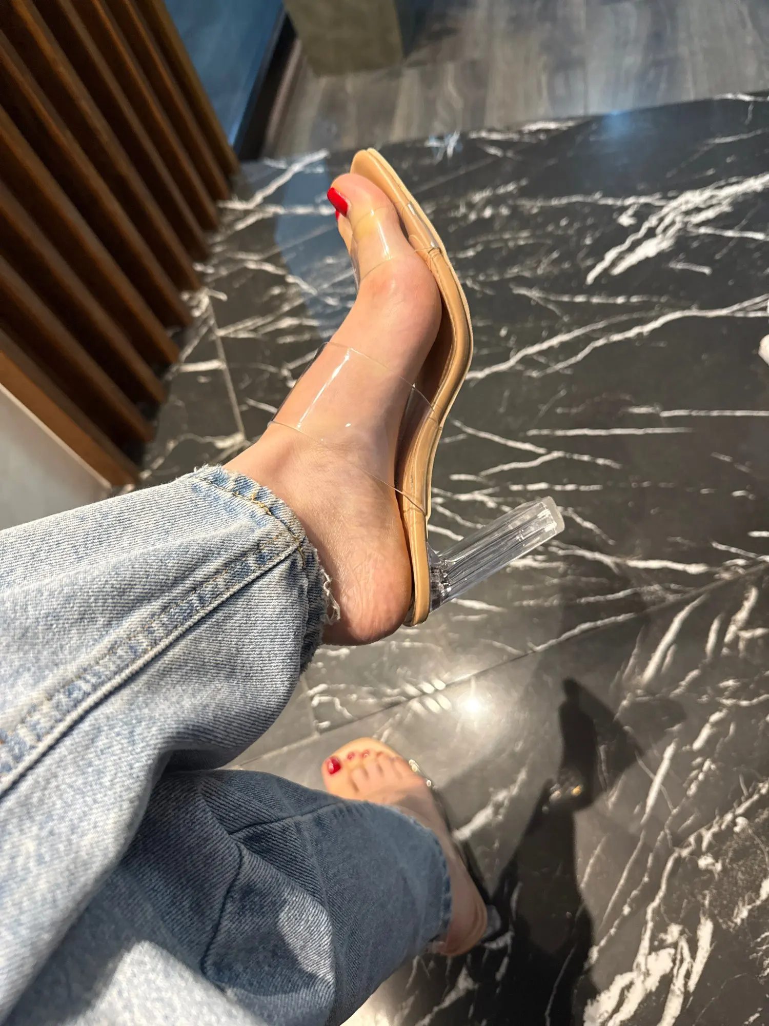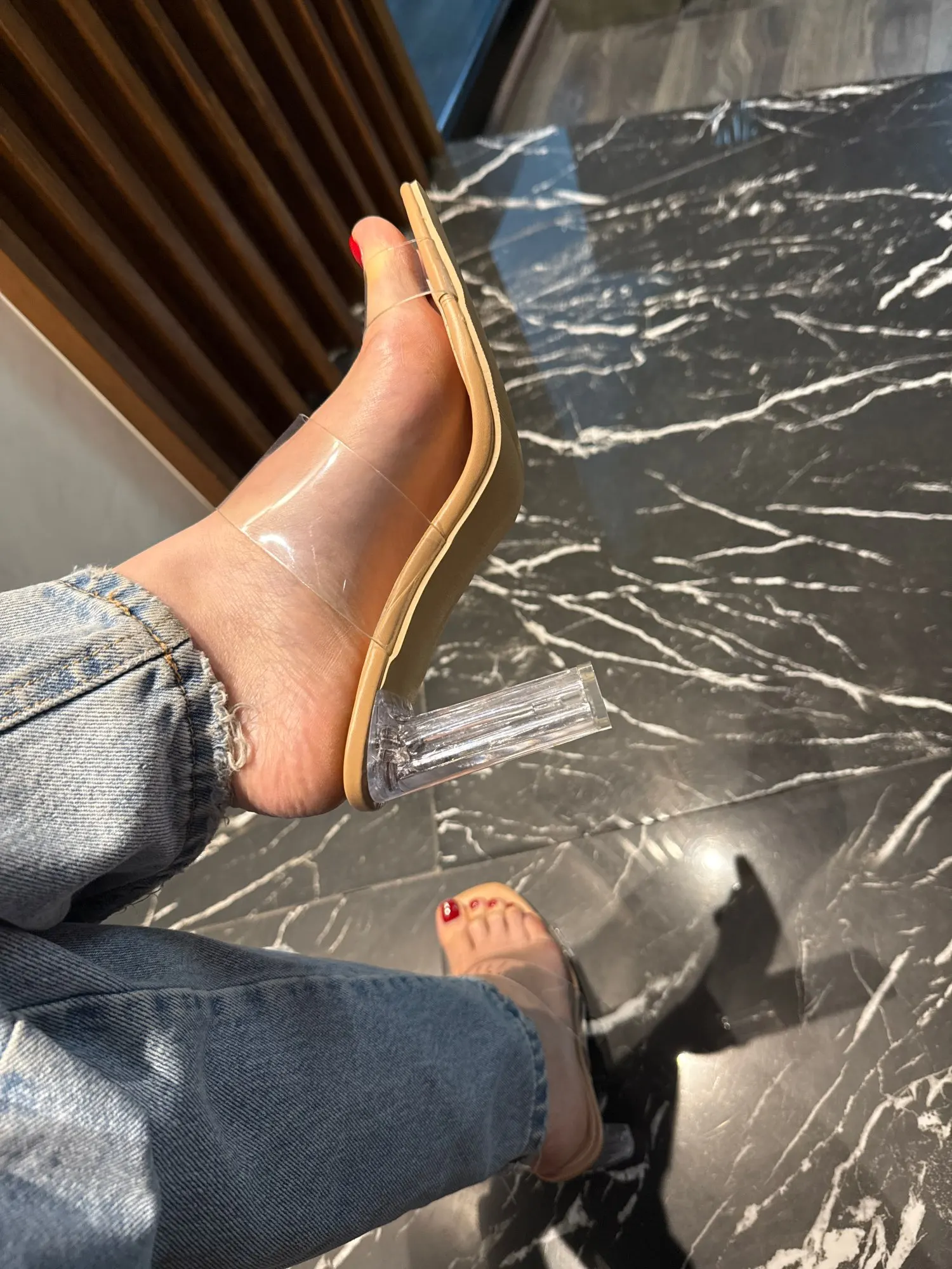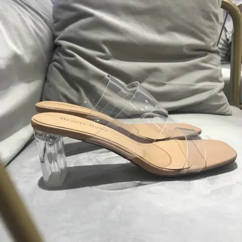 Women Clear Strap Block Heel Sandals Transparent High Heel Mules OUT1103
