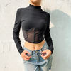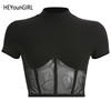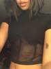 Women Sexy Crop Tops Tees Summer 2020 Party Patchwork Black Mesh T Shirt Casual Harajuku Short Sleeve L0067