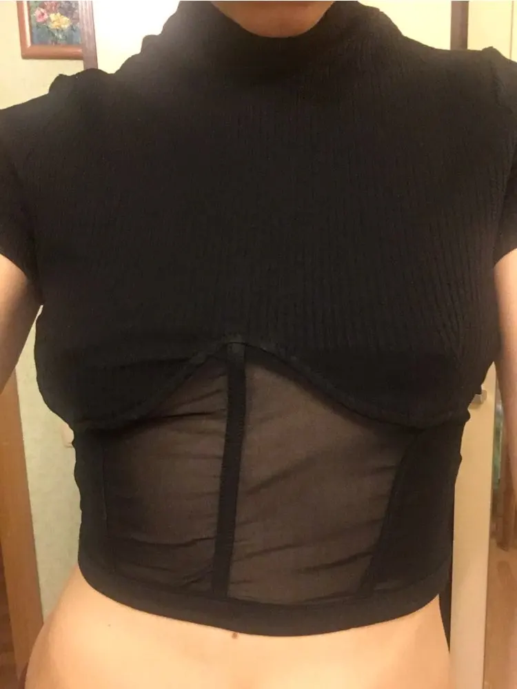 To be purchased in the 11.11 file fast (14 days). Very well packed and no sewing problem. I asked for size L, and it's true that for girls who have a lot of chest, it's gonna be short, like me, but the truth is, I like it that way. For the price is worth it, I'm happy :)